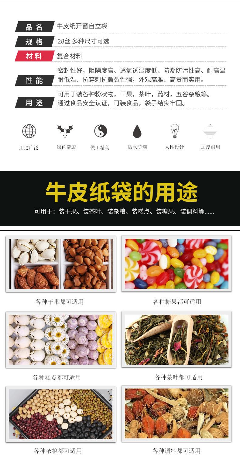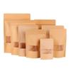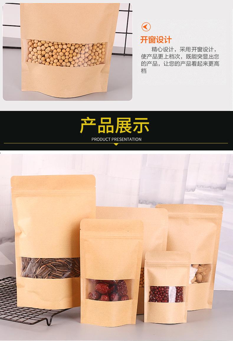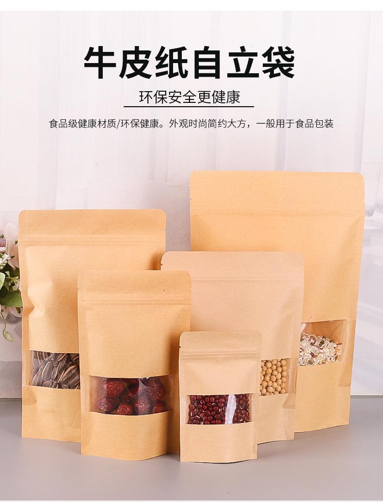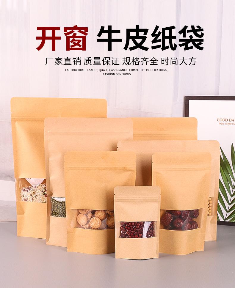 Bolsa de papel Kraft autosostenible y autosellable para bolsita de té con ventana, bolsa de papel Kraft, bolsa para embalaje de alimentos para frutos secos, bolsa sellada para fruta deshidratada