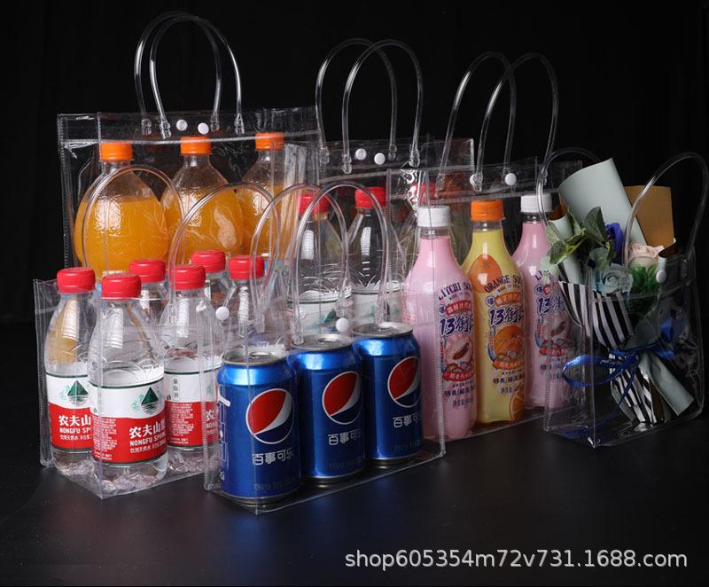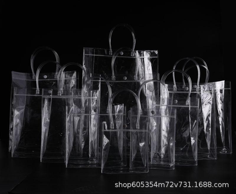 Bolsa de regalo transparente en stock bolsa de regalo de Navidad bolsa de embalaje de Navidad bolso de mano pequeño de PVC para llevar en la mano bolsa de compras