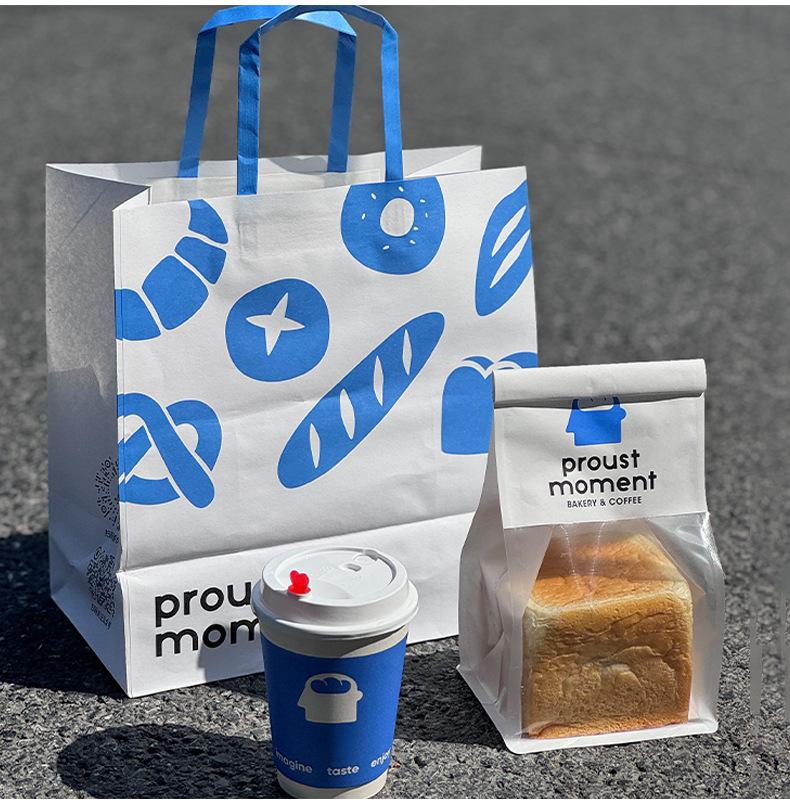 Bolsa de Papel Kraft para Celebridad de Internet Bolso de Mano Empaque para Hornear Pan Postre Café Bolsa de Empaque para Llevar Logotipo Personalizado Impreso