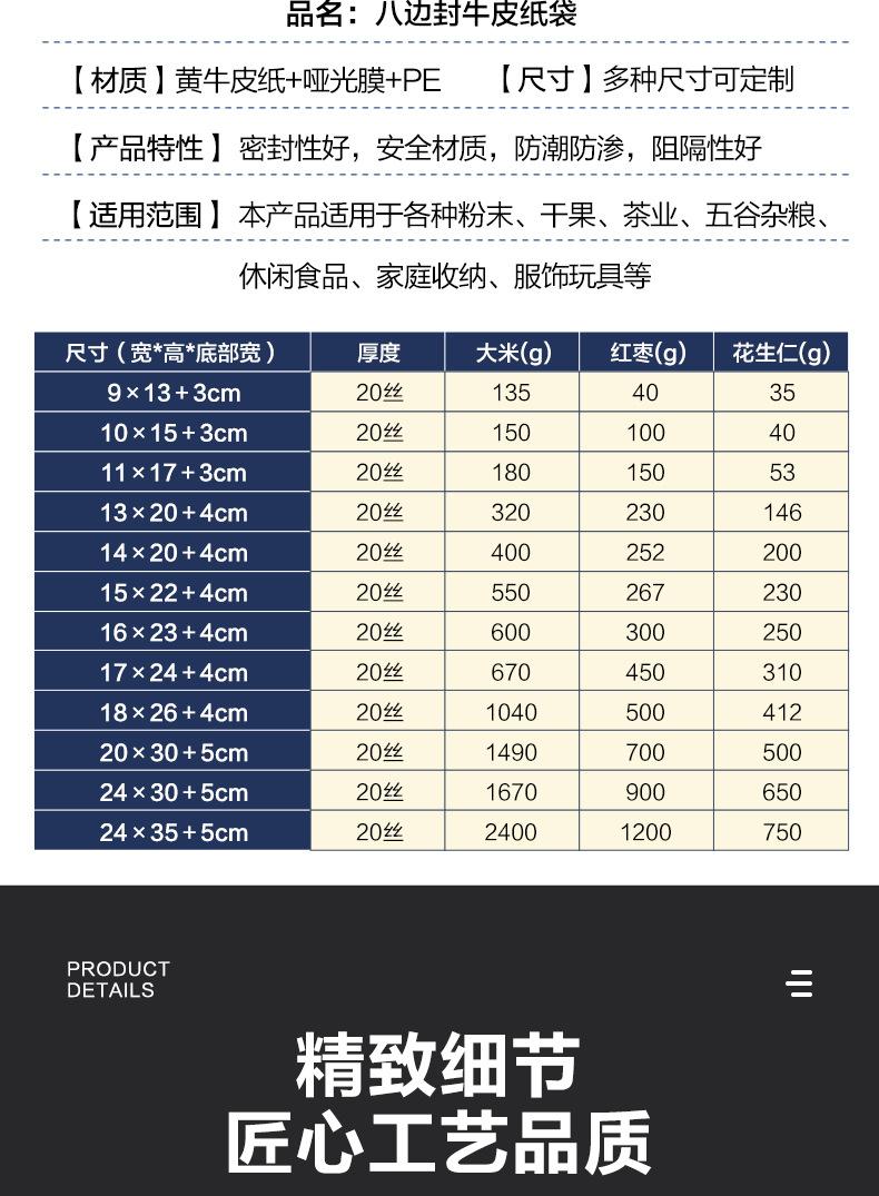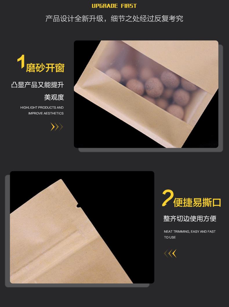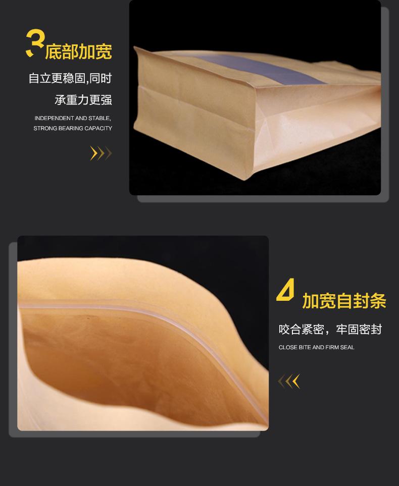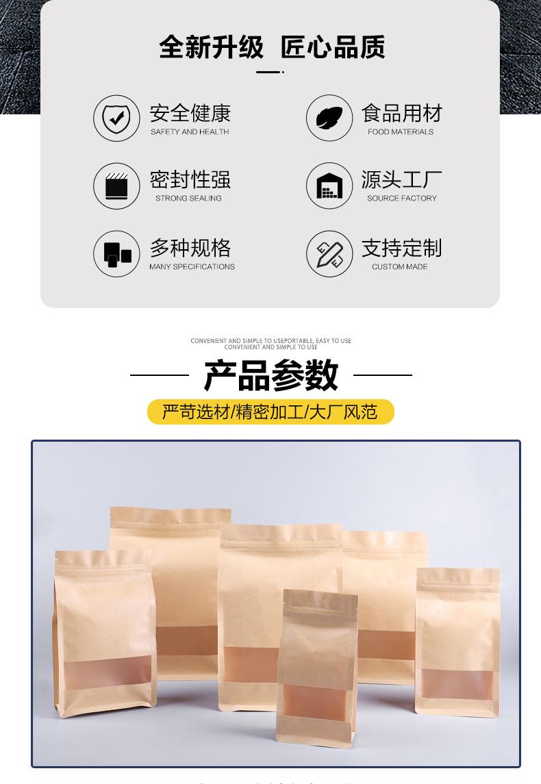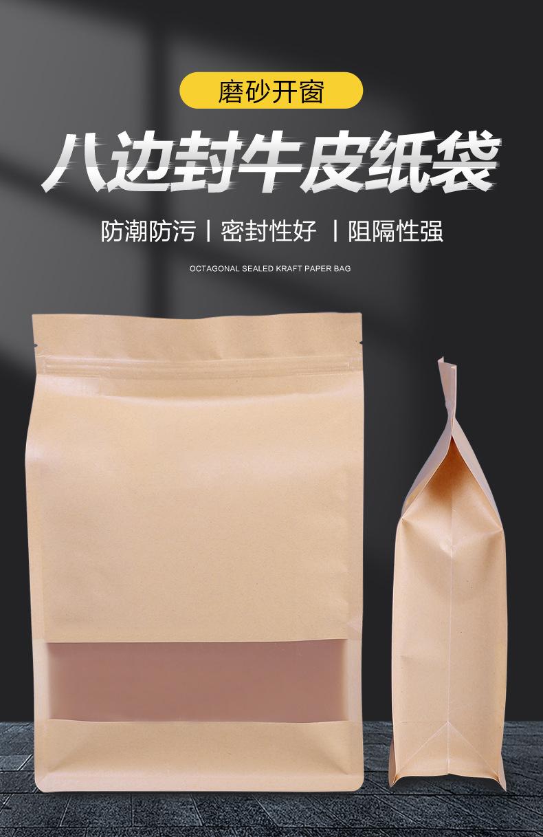 Bolsa de Papel Kraft con Ventana Sellada por Ocho Lados Bolsa para Empaque de Té Bolsa Autoportante Bolsa de Papel Kraft Bolsa con Cierre Zip Bolsa para Empaque de Alimentos