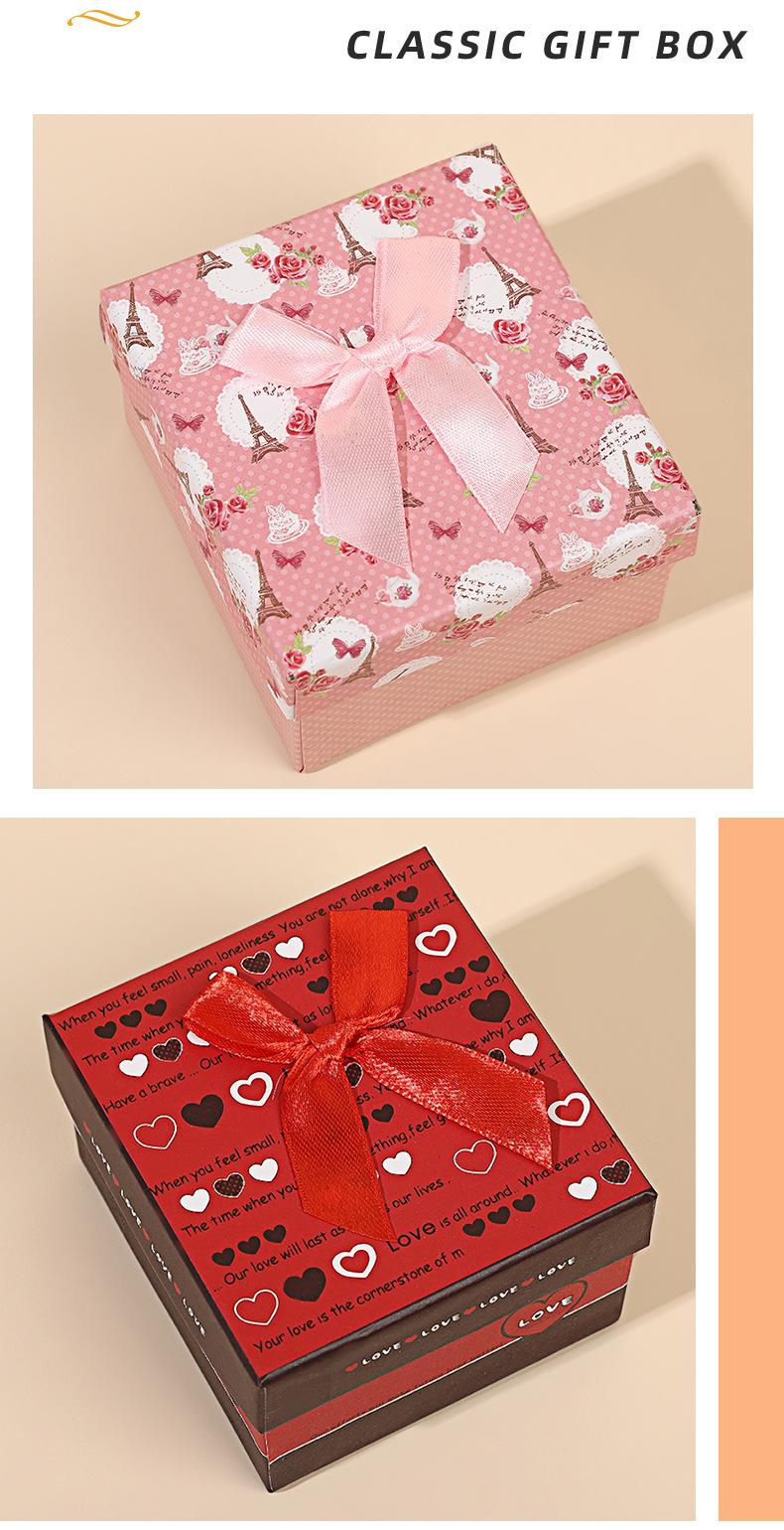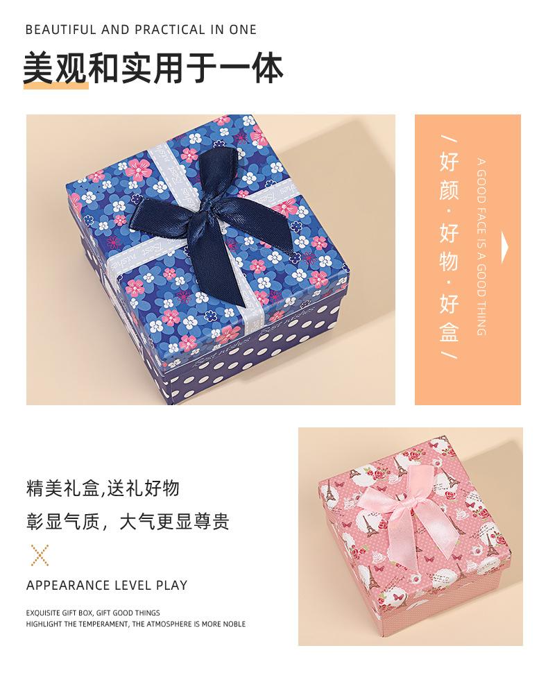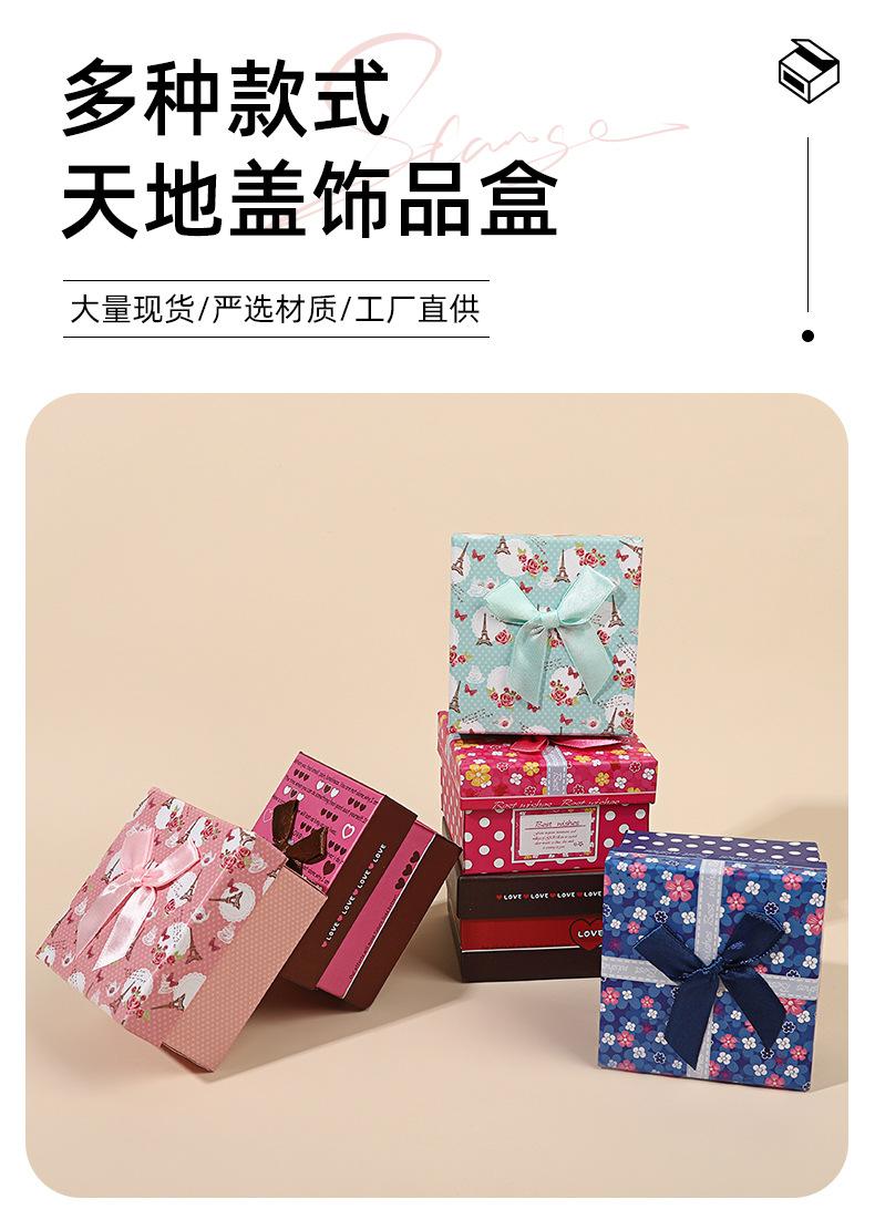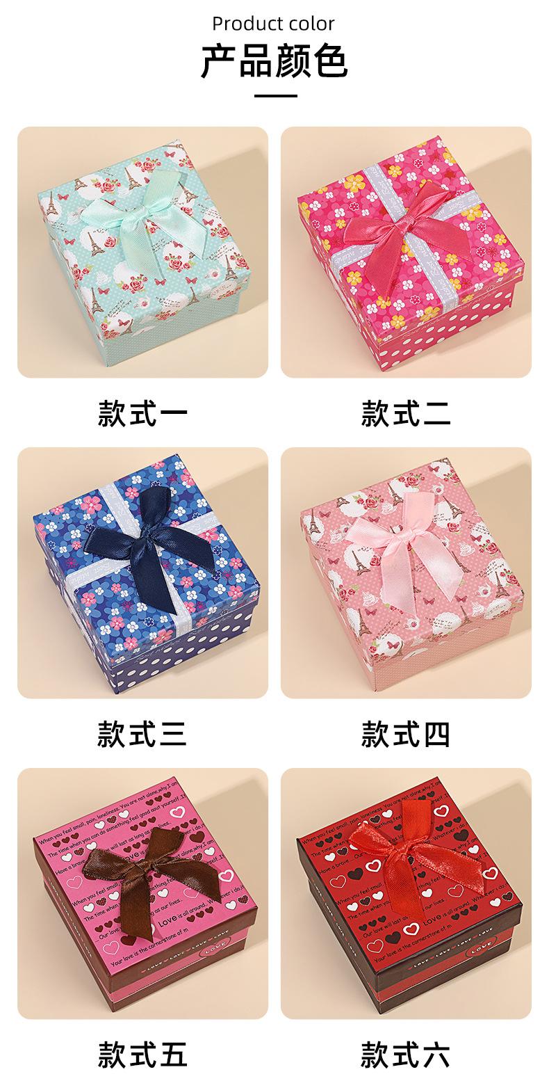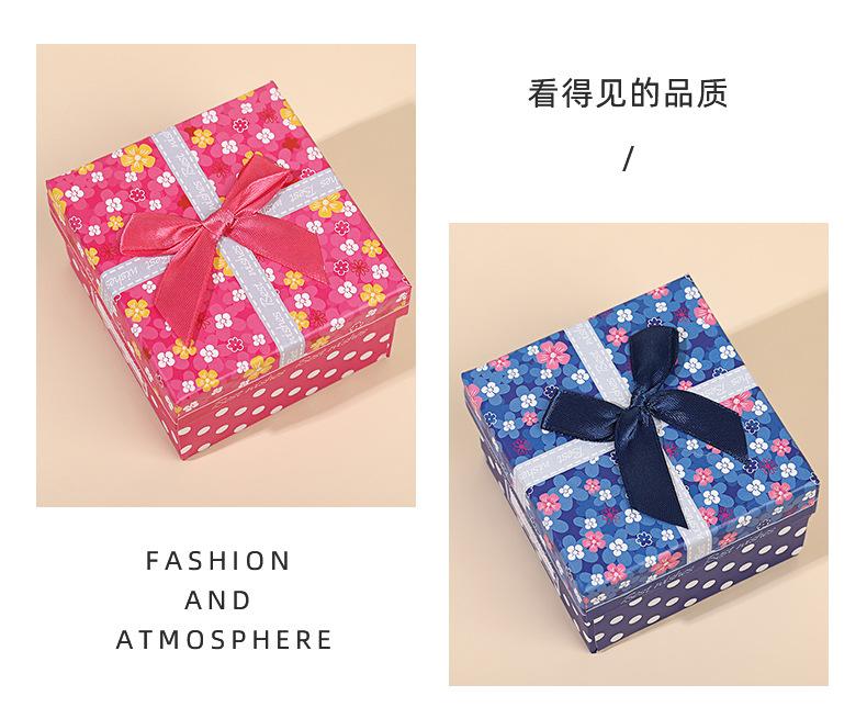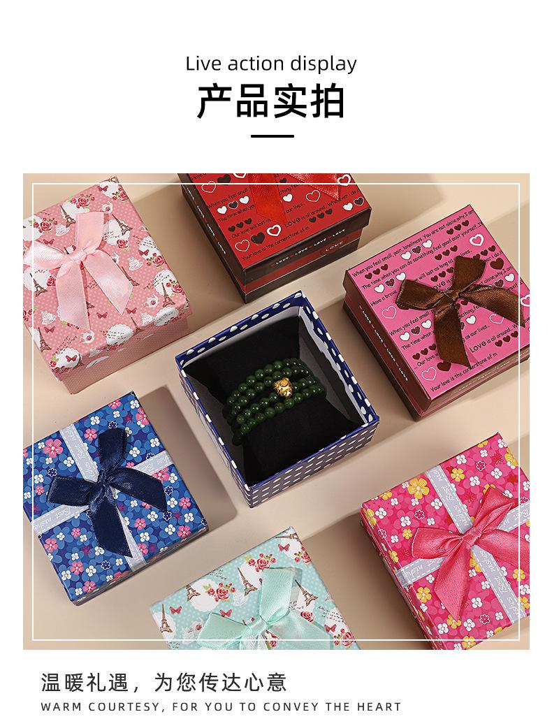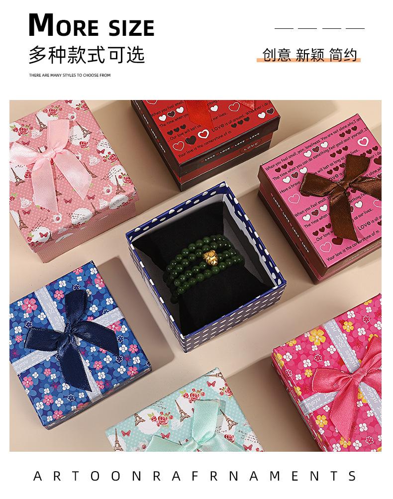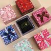 Caja de Embalaje para Joyería con Lazo Moteado, Caja de Regalo Cuadrada para Joyería, Caja de Papel Duro con Tapa y Base, Caja para Anillo, Joyería