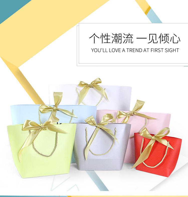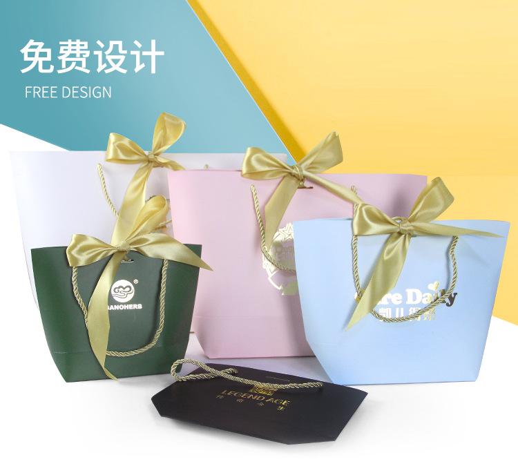 Bolsa Lingote Lazo Dorado Spot Cartón Blanco Regalo de Navidad Bolso de Mano Bolsa de Papel para Compras de Ropa Colorida Personalización