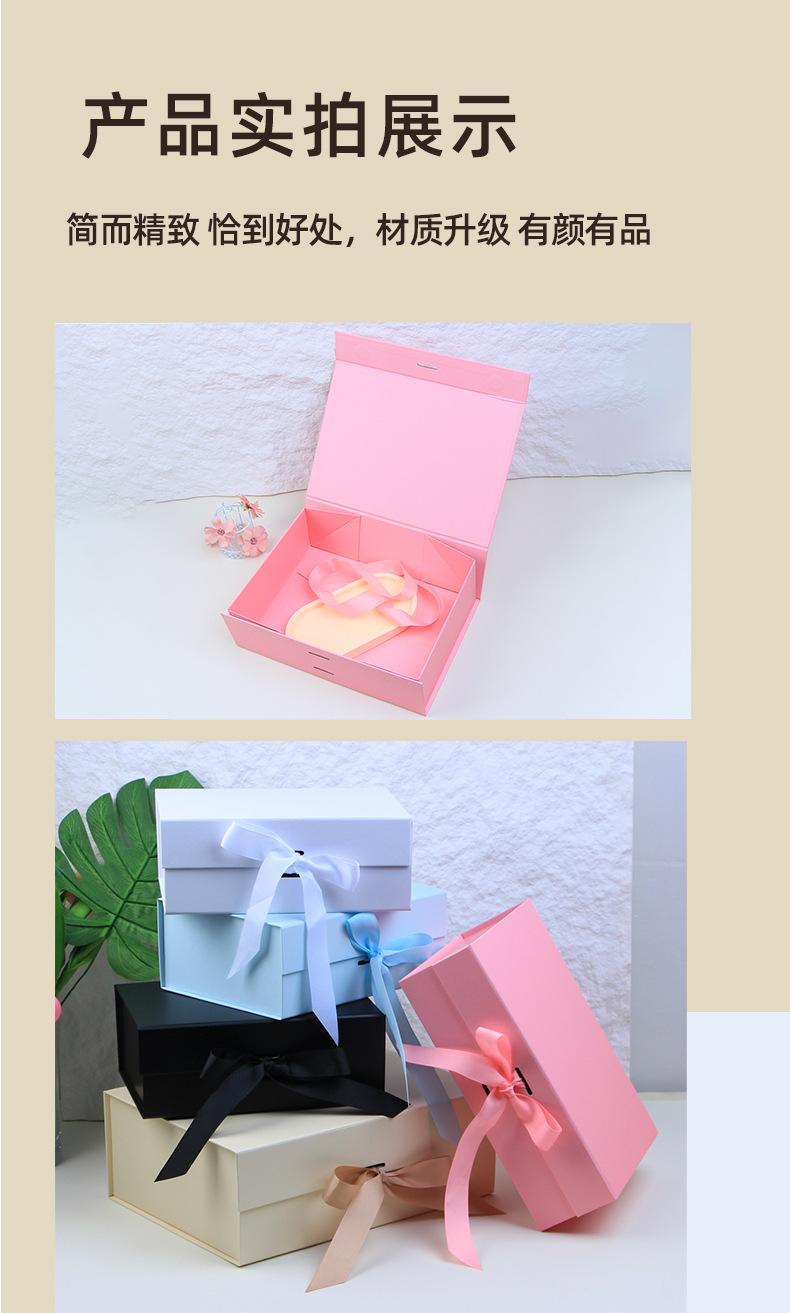 Caja de regalo con lazo, disponible en stock, con imán abatible, ideal como regalo de compañía, para cajas plegables clásicas.