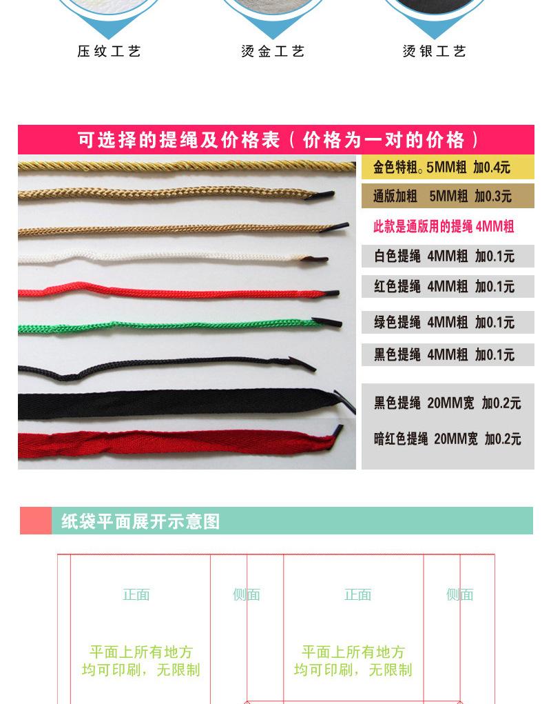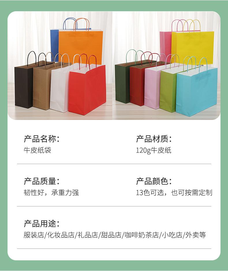 Esta bolsa de papel está disponible, sin impresión publicitaria. Puede pedirla directamente y se envía de inmediato. Si necesita imprimir publicidad, podemos imprimirla a un solo color por ambas caras para 500 unidades o más, y en tamaños personalizados para 1000 unidades o más. El precio de impresión debe cotizarse según las necesidades del cliente. Consulte con atención al cliente para obtener precios específicos. (Puede optar por impresión offset, serigrafía, estampado en caliente y otros procesos para imprimir publicidad en bolsas de papel. Tanto clientes nuevos como antiguos pueden visitar nuestra tienda para consultarnos).