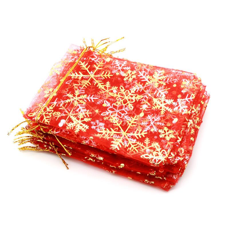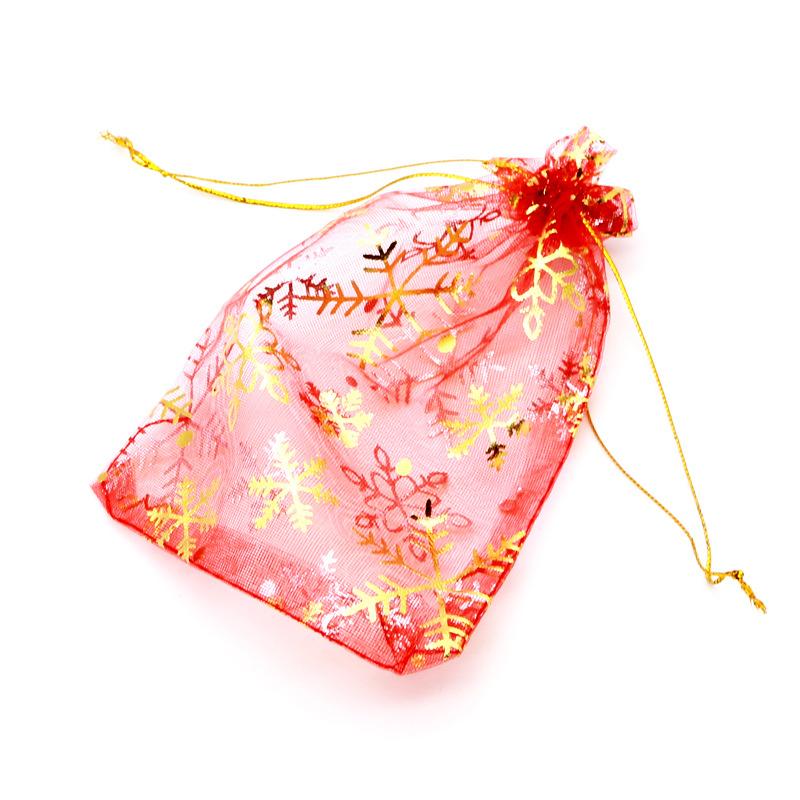Bolsas de Gasa Navideñas de Copo de Nieve Doradas y Plateadas Estampadas en Caliente