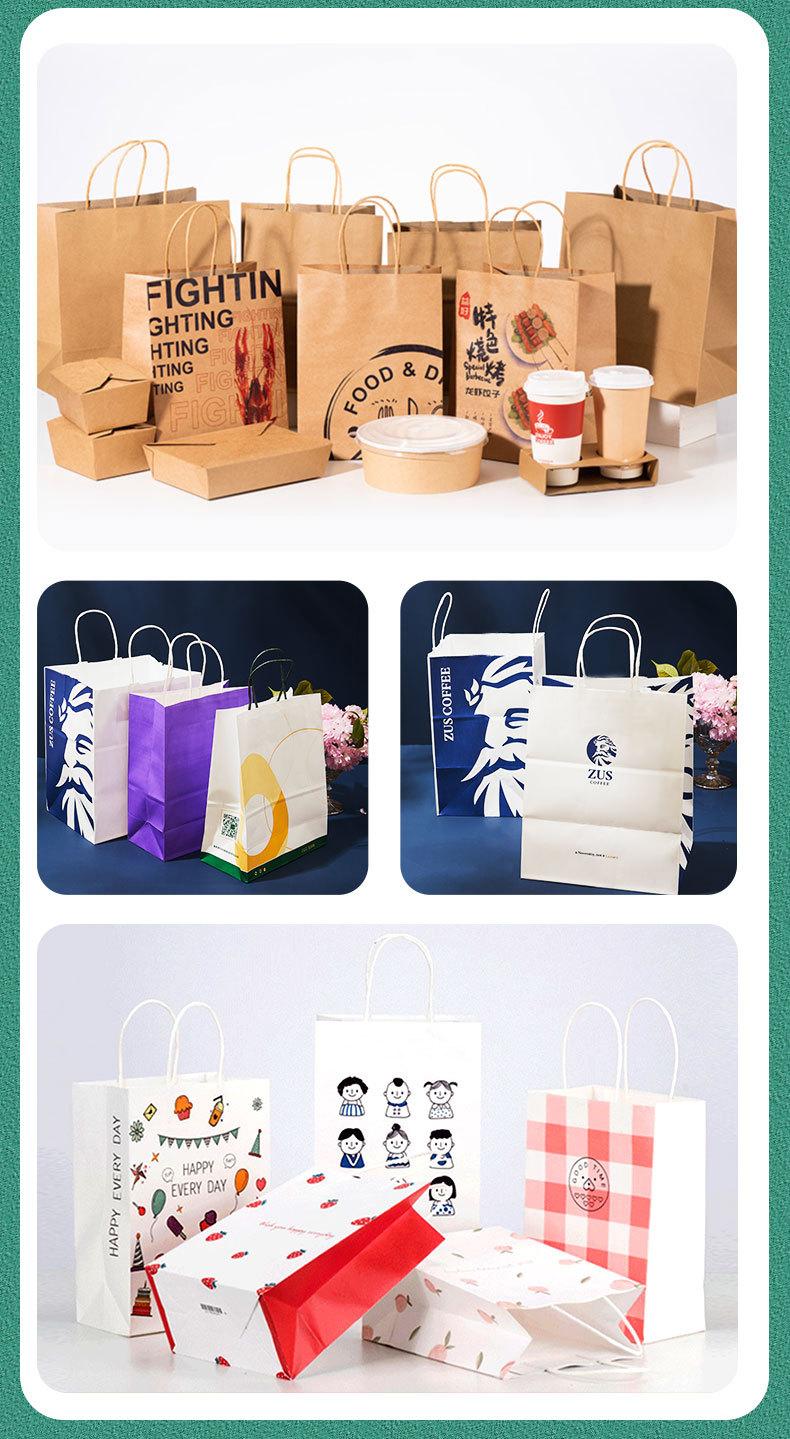 Bolsa de papel kraft bolsa de regalo embalaje bolsa tote engrosada logotipo impreso personalizado horneado té con leche para llevar bolsa de embalaje