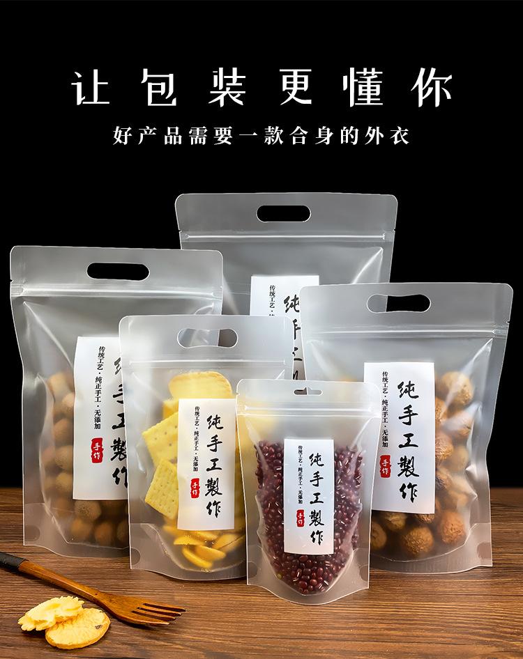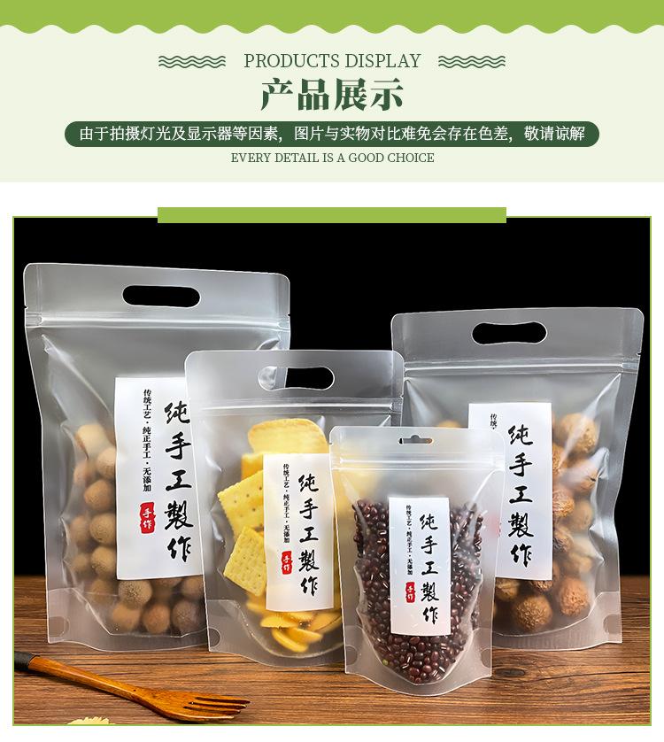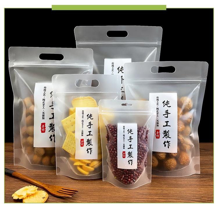 Bolsa de Embalaje Hecha a Mano Bolsa Autoportante Autosellable Bolsa Portátil para Snacks Horneado Plástico Transparente Esmerilado Sello