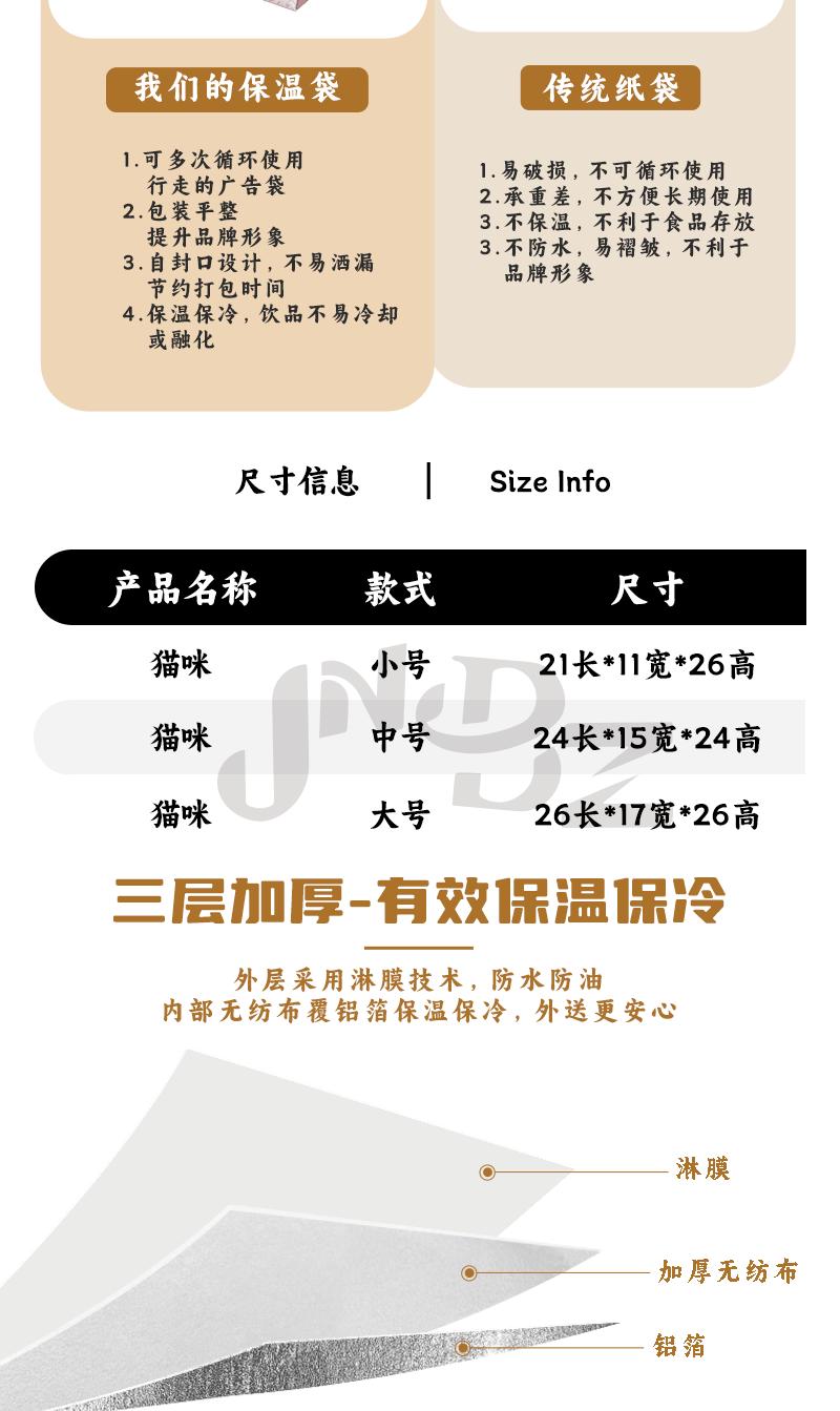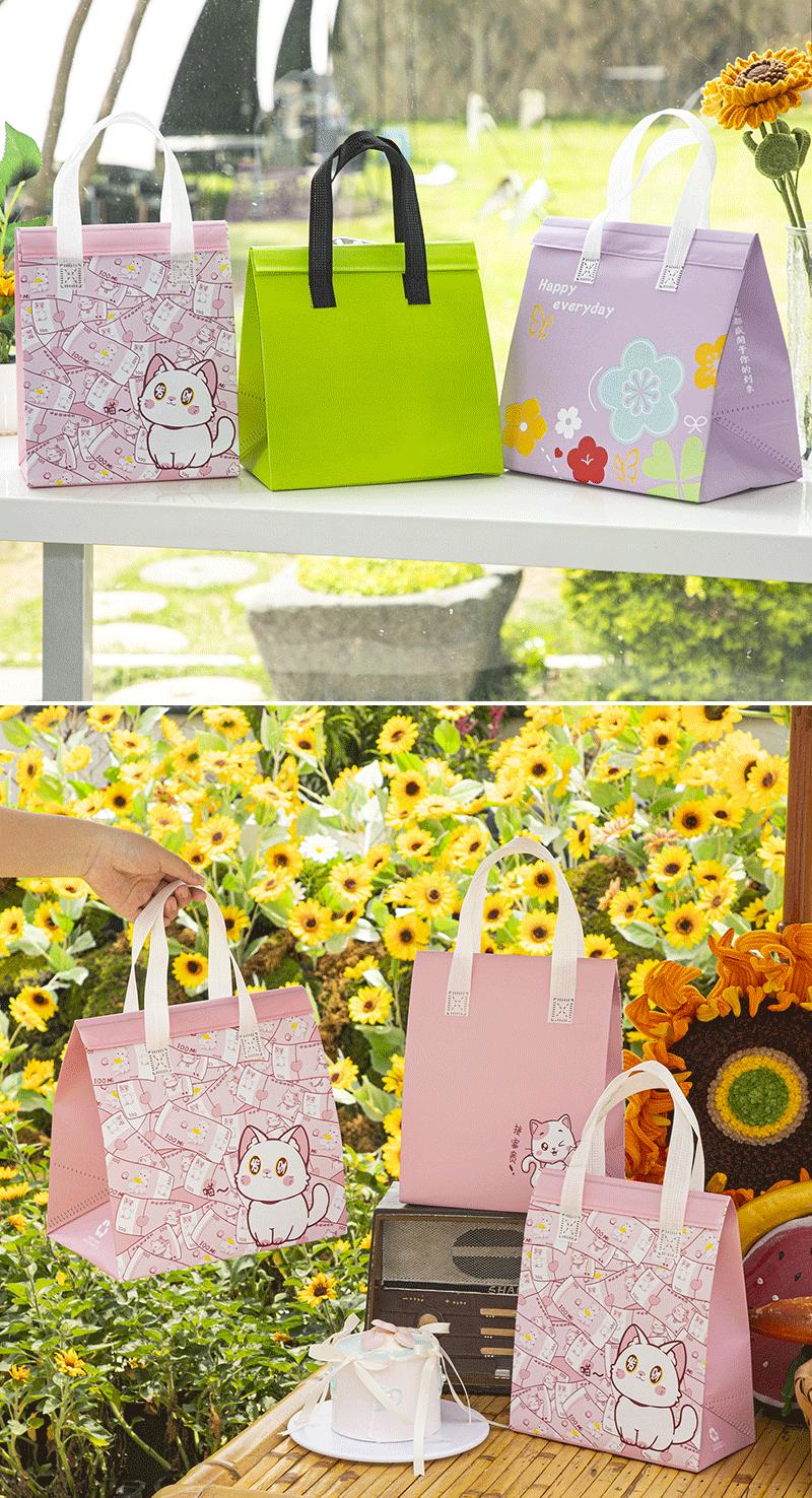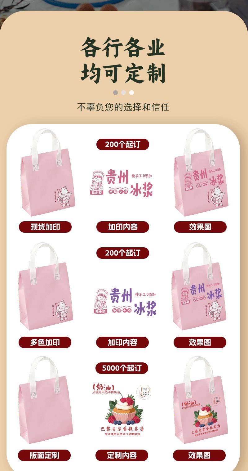 Catering de Té con Leche de Postre para Llevar Bolsa Portátil Aislada de Tela No Tejida Engrosada con Papel de Aluminio Bolsa de Embalaje para Llevar Tamaño Personalizable