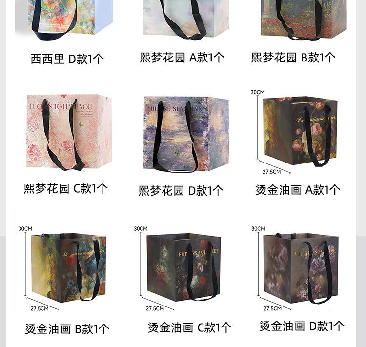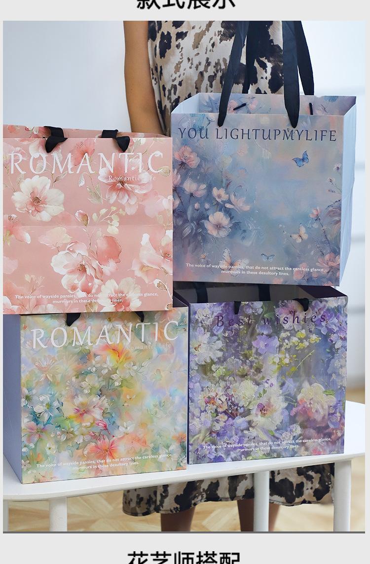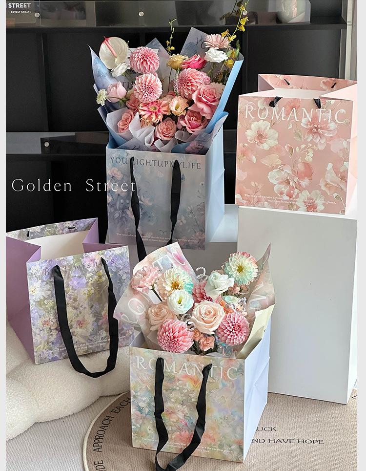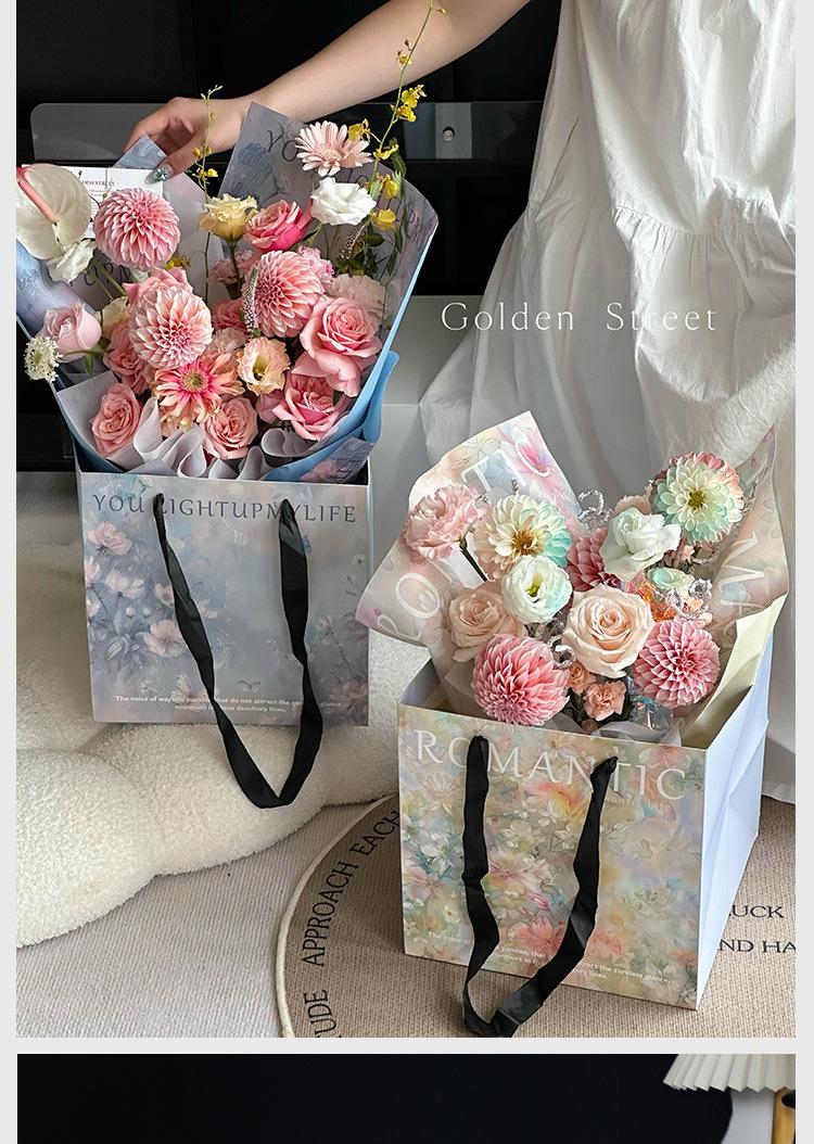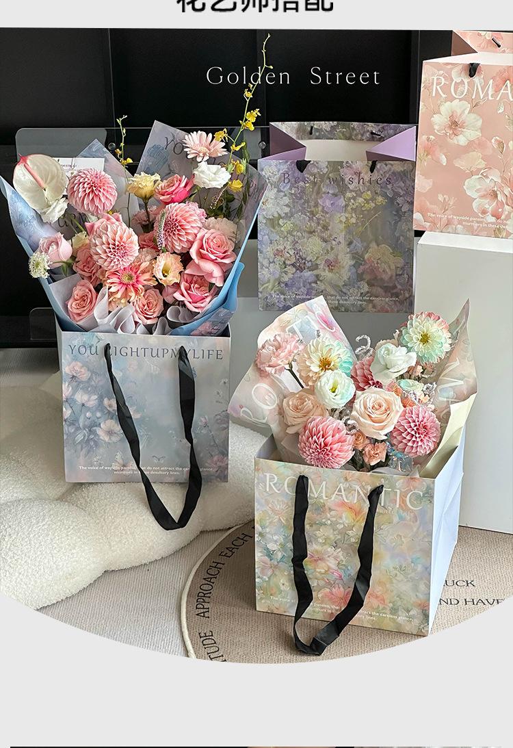 Bolso de Mano Estilo Pintura al Óleo de Flores Zhuoxian Caja de Regalo Floral Bolsa para Arreglos Florales Bolsa para Ramo Bolsa de Regalo Bolsa para Empaque de Flores