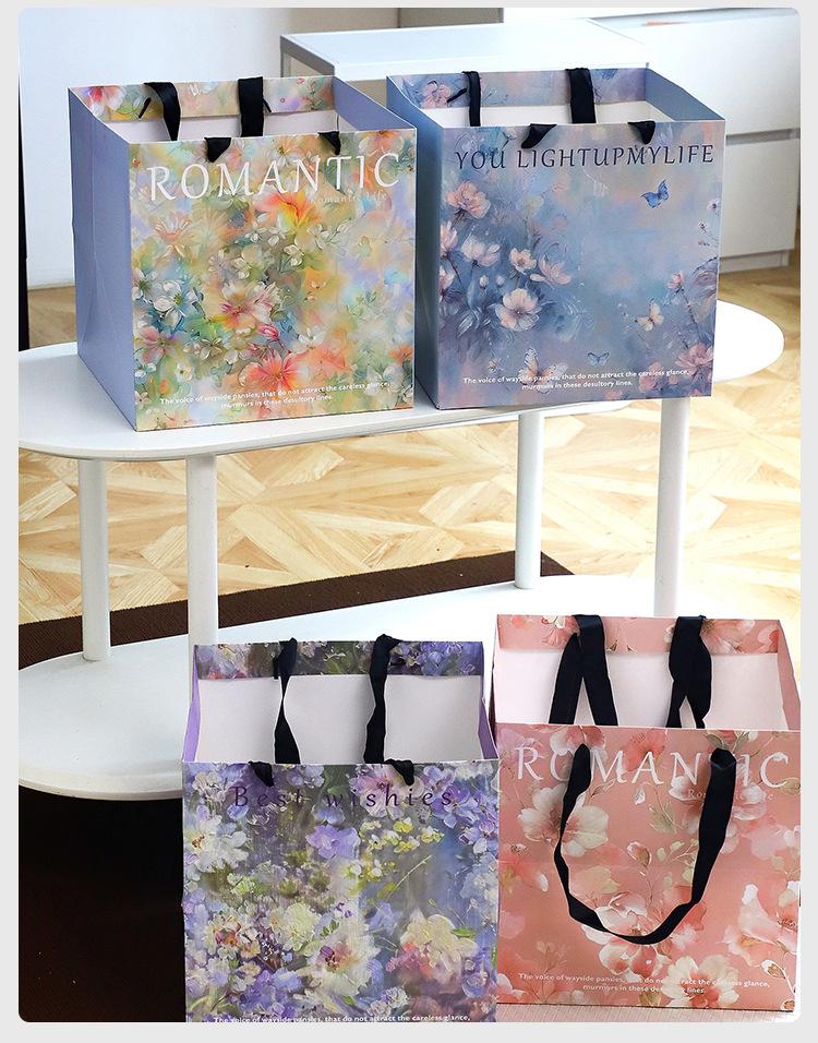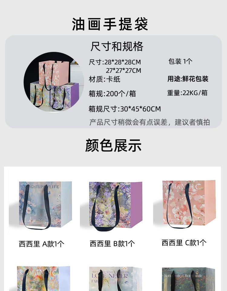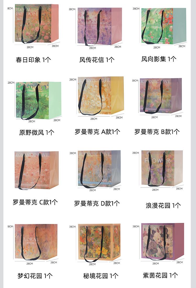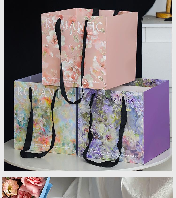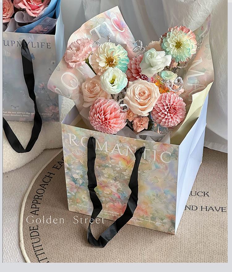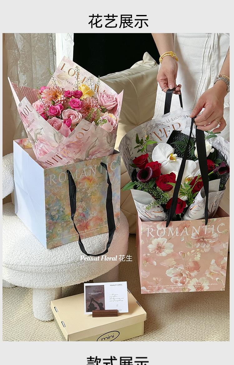 Bolso de Mano Estilo Pintura al Óleo de Flores Zhuoxian Caja de Regalo Floral Bolsa para Arreglos Florales Bolsa para Ramo Bolsa de Regalo Bolsa para Empaque de Flores
