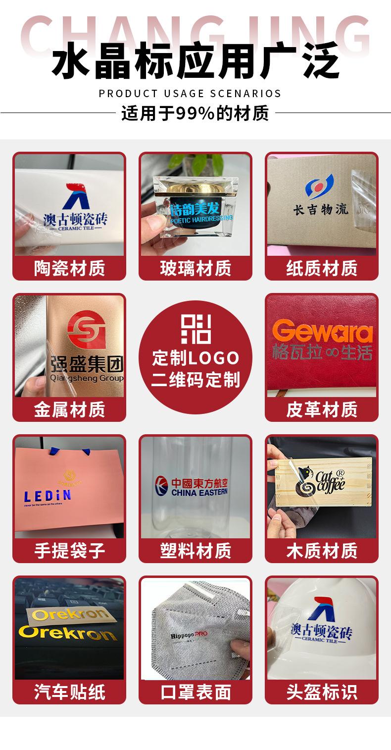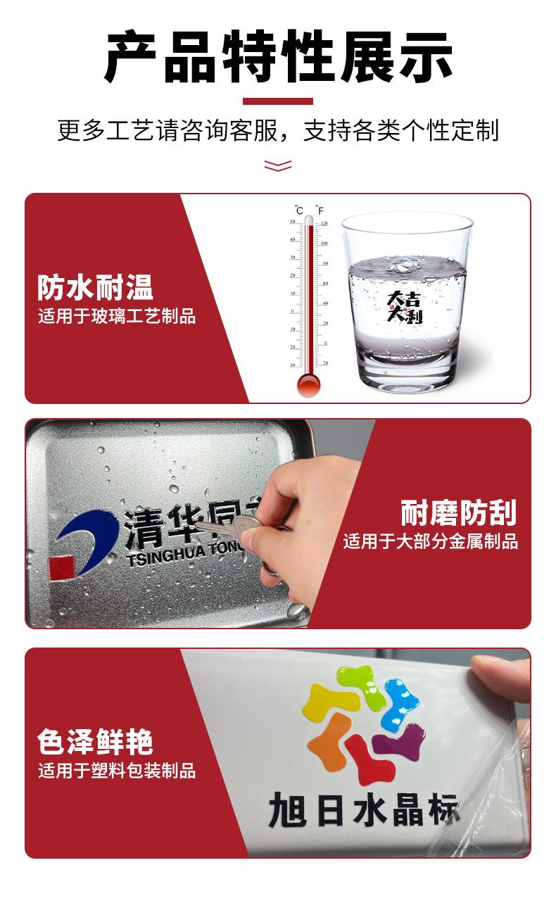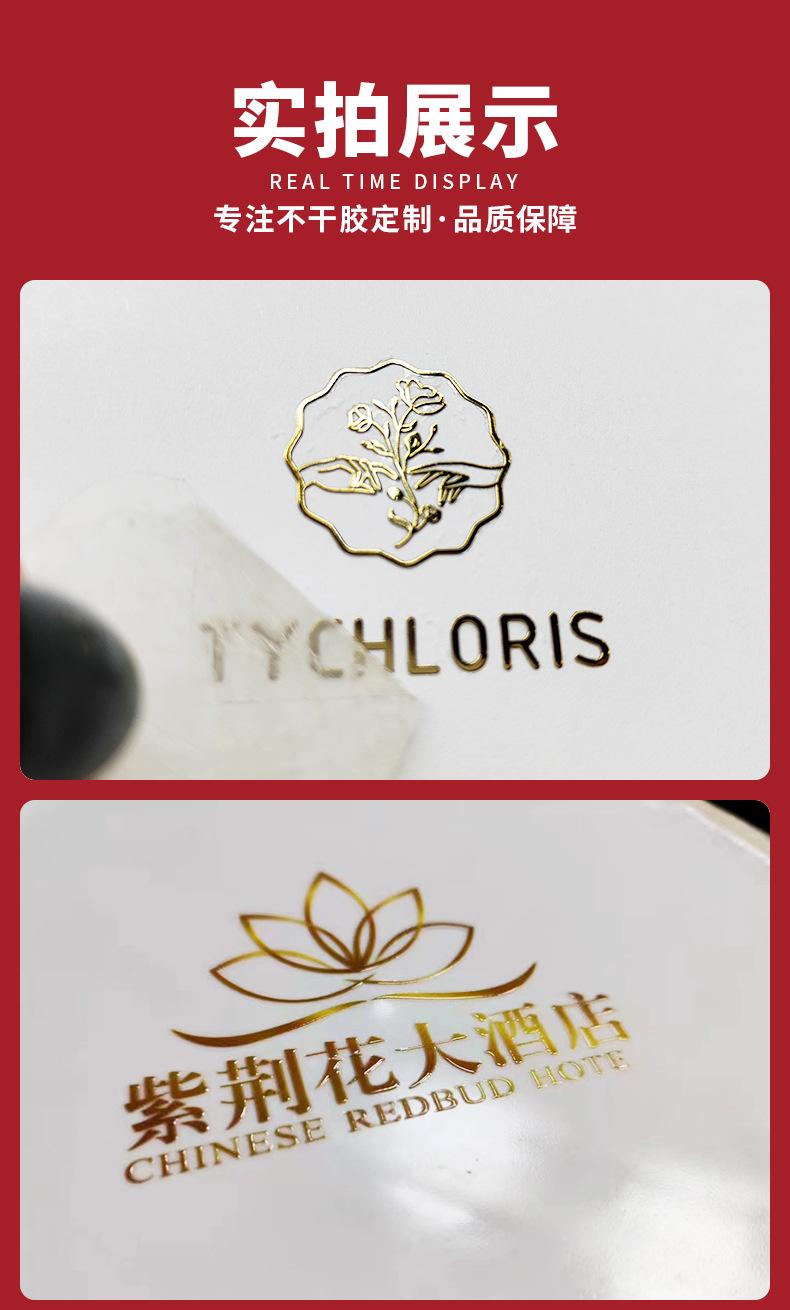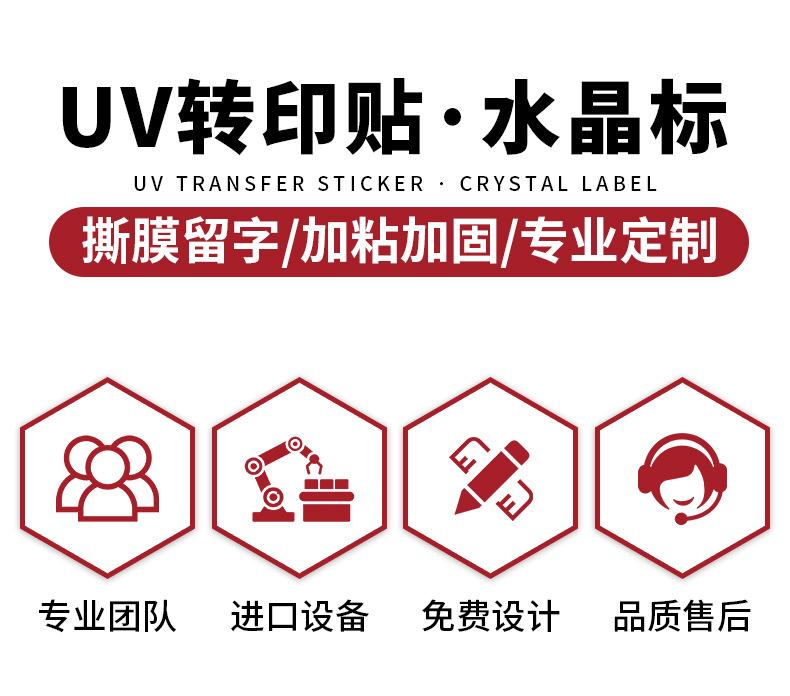 Sticker de cristal sticker de transferencia UV sticker personalizado desprendible con residuo sticker transparente de estampado en caliente logotipo marca registrada etiqueta metálica personalizada