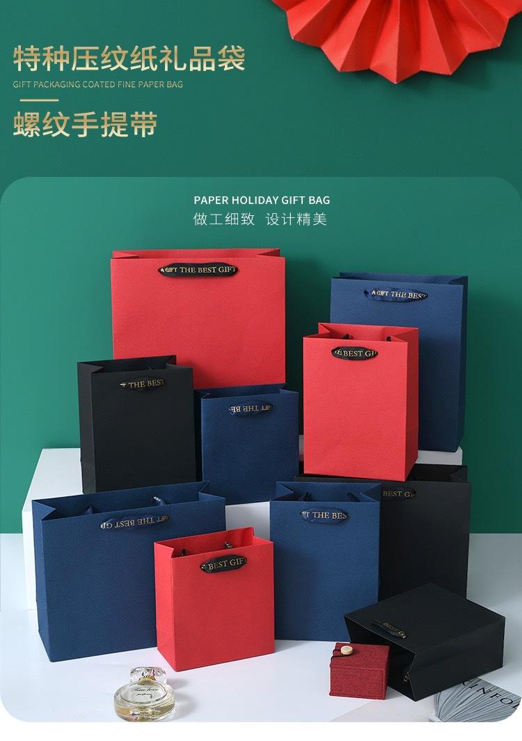 Papel especial spot tarjeta negra papel de regalo bolsa de papel rojo tarjeta bolso de mano tarjeta azul bolsa de regalo ropa de negocios compras bolsa de embalaje