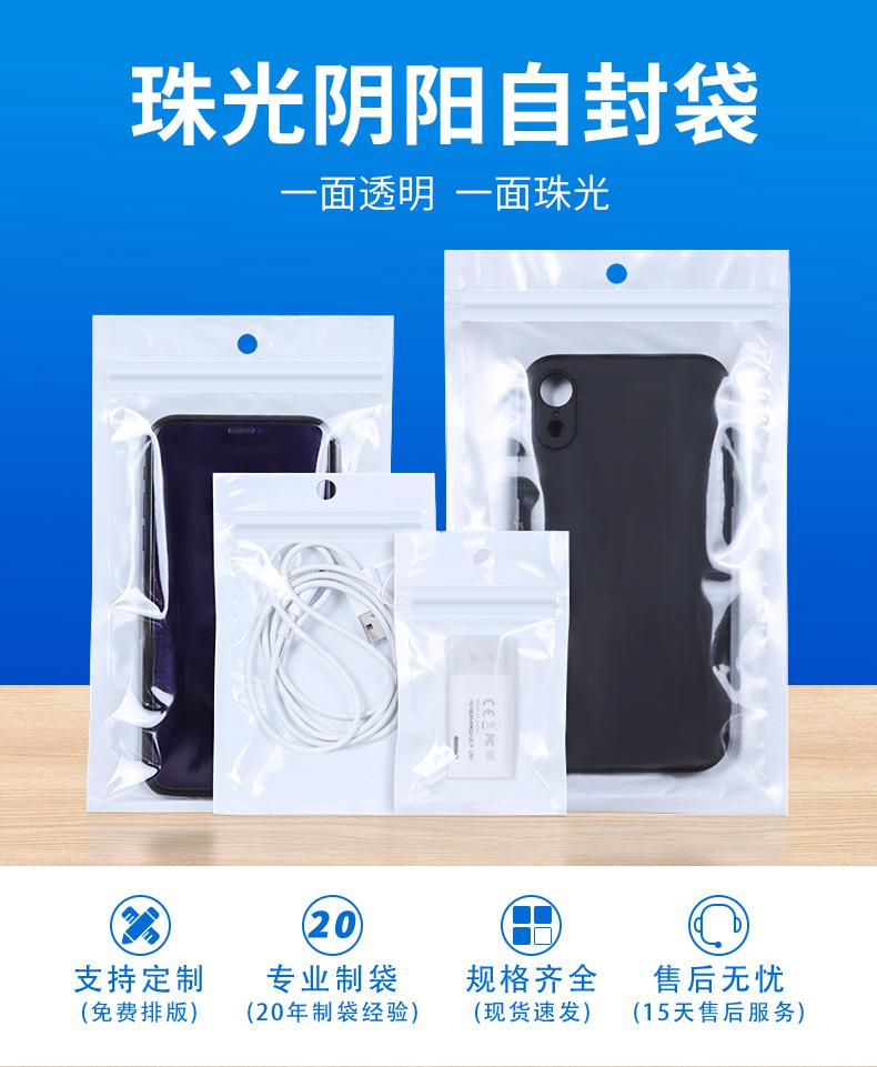 Bolsa Ziplock Blanca Esmerilada de 14 Alambres Personalizada Bolsa Sellada Perlada Yin y Yang Bolsa para Estuche de Teléfono Móvil Cable de Datos Bolsa Sellada Impresa