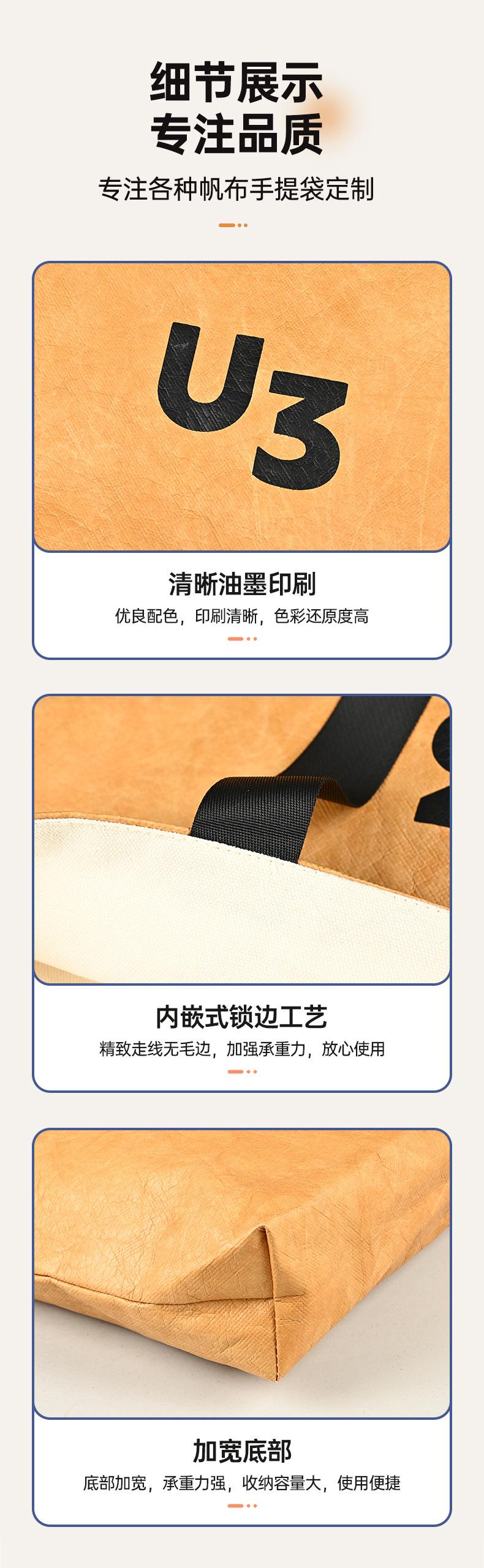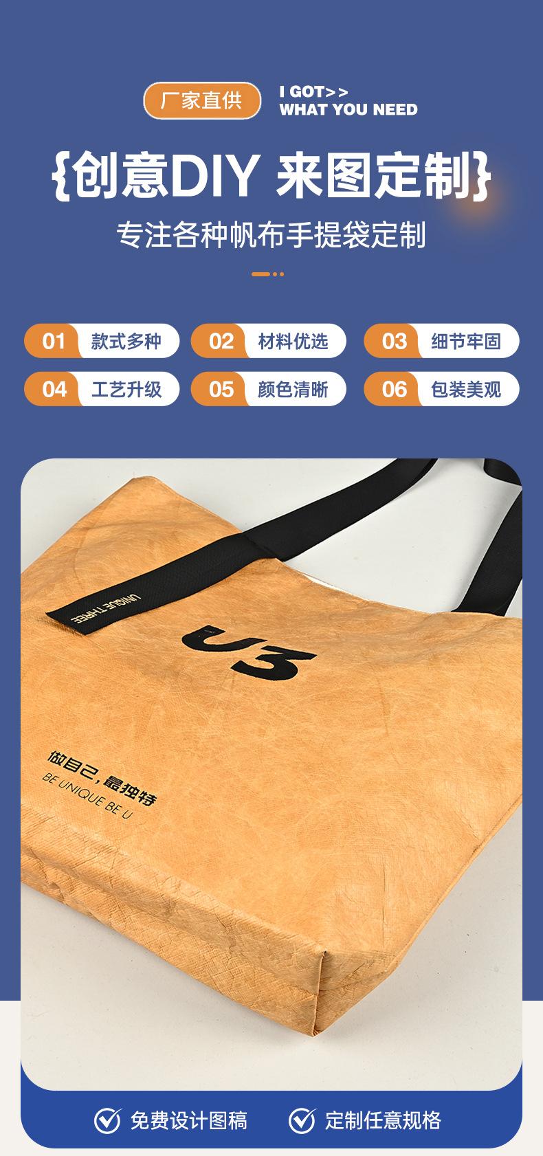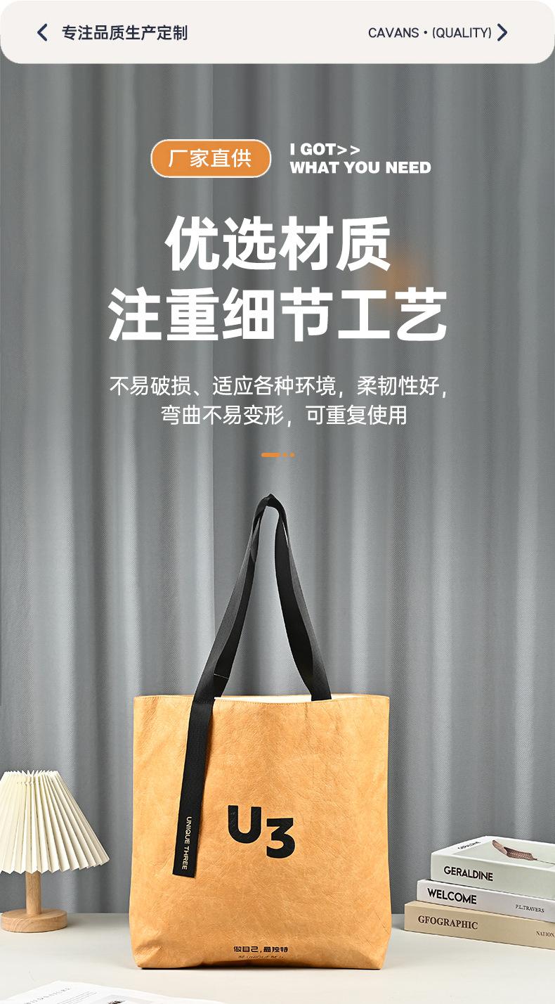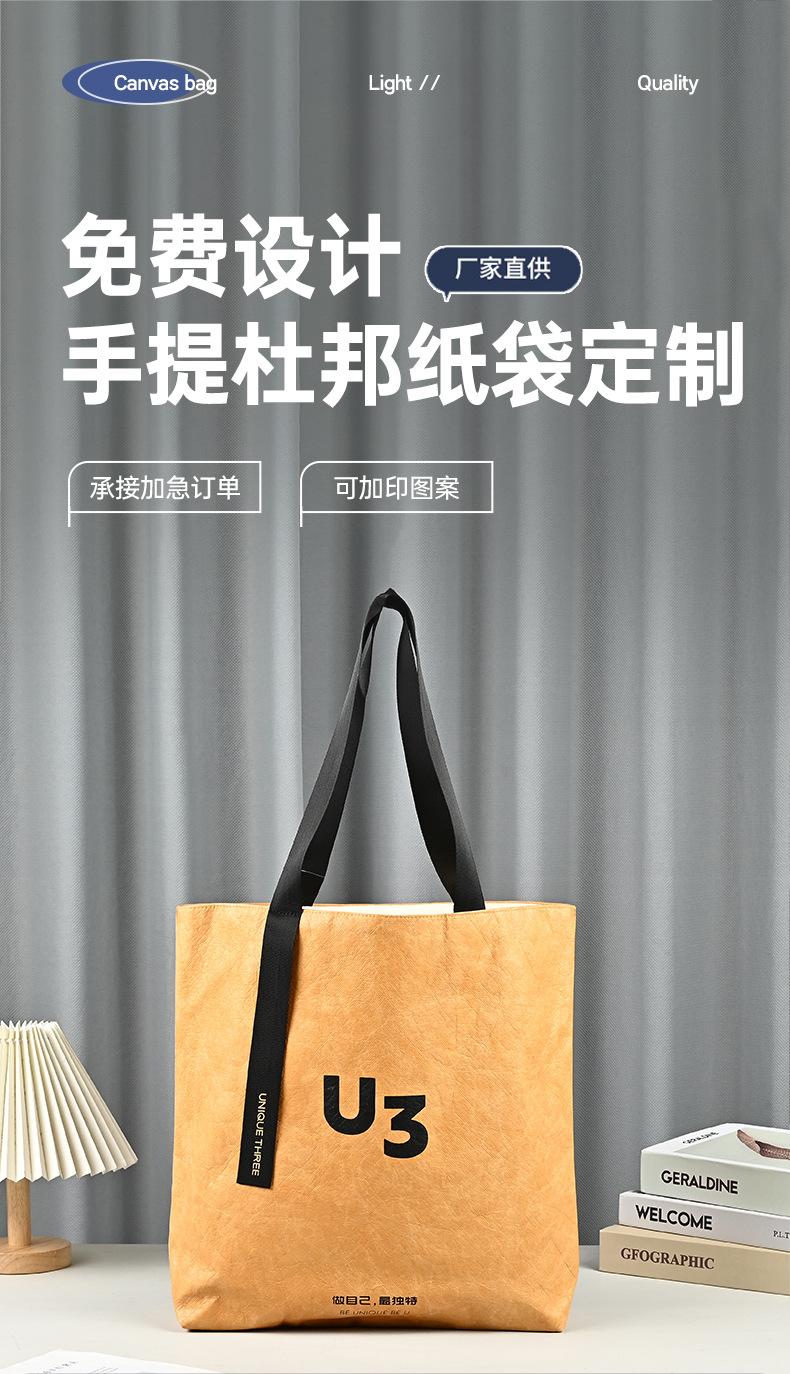 Bolsa de Papel Dupont Personalizada Lavable Bolsa de Papel Kraft Embalaje de Regalo Compras Bolsa de Mano de Papel Dupont Logo Personalizado