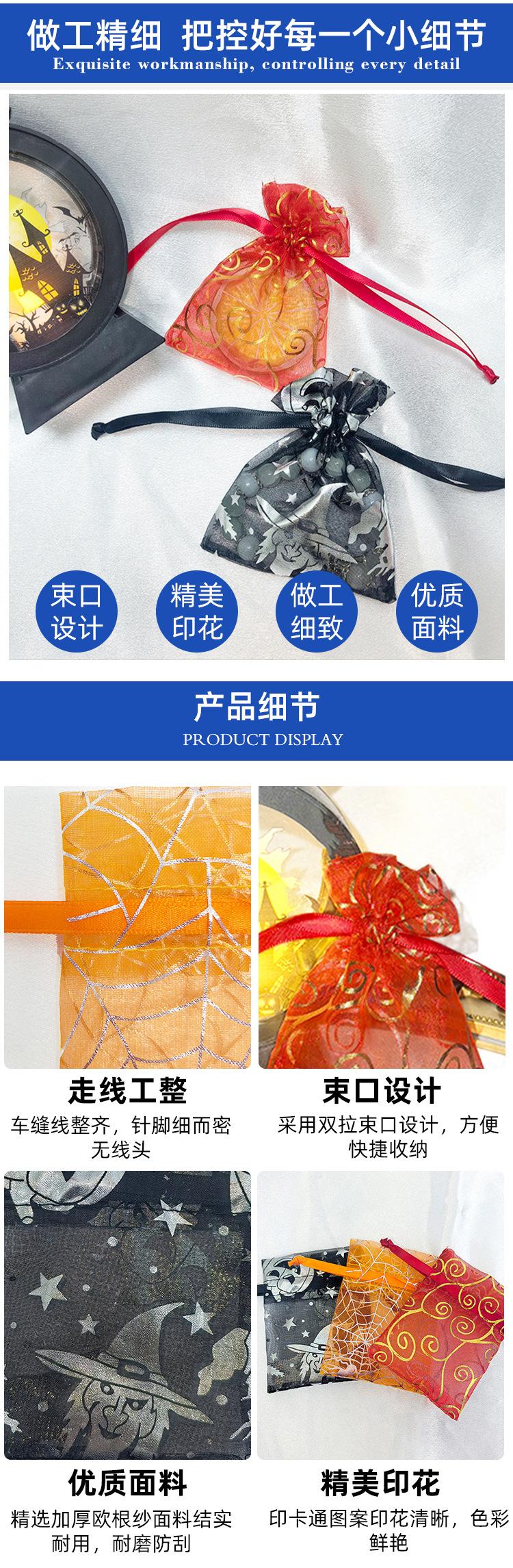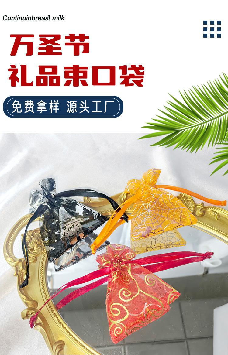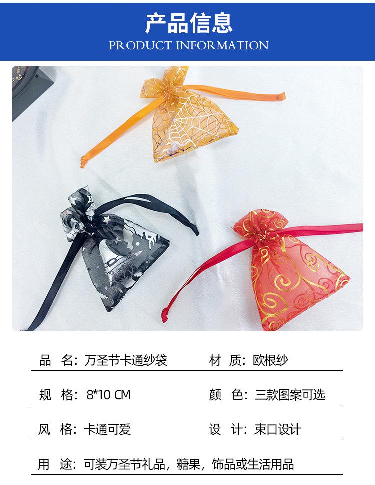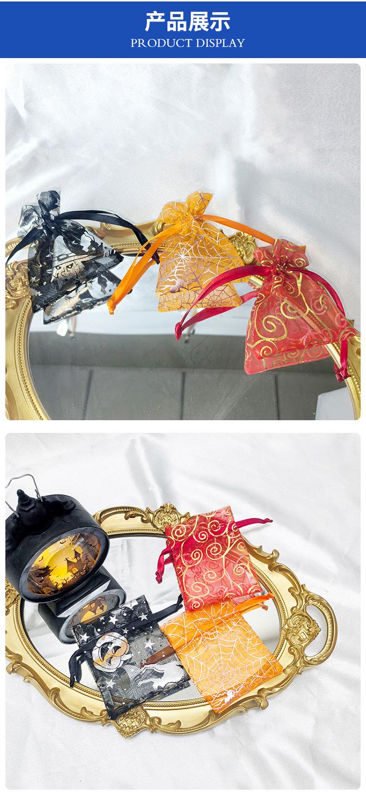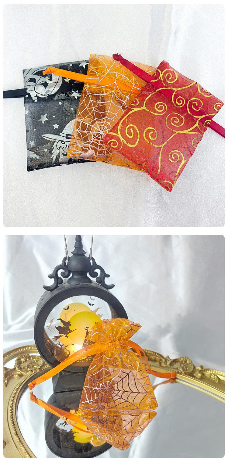 Bolsa de Gasa Plateada Estampada en Caliente Directa de Fábrica para Halloween, Cinta, Bolsa de Regalo, Regalo de Vacaciones, Bolsa para Empaque de Dulces