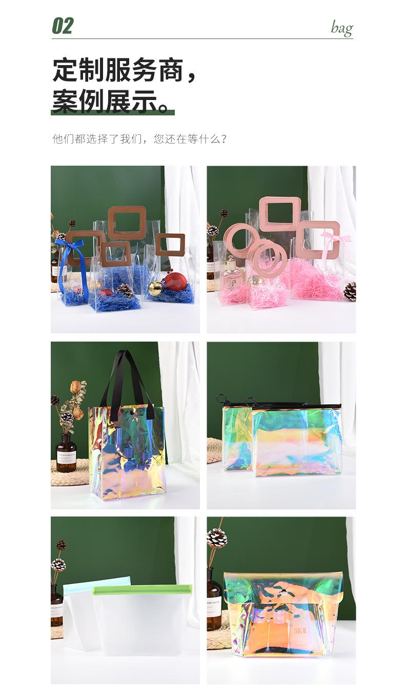 Bolsas de Regalo para Estudiantes al Mayoreo Bolsas Tote de Pvc con Forma de U para Dulces de Boda Bolsos de Plástico Arqueados Estilo Ins Hechos a Medida