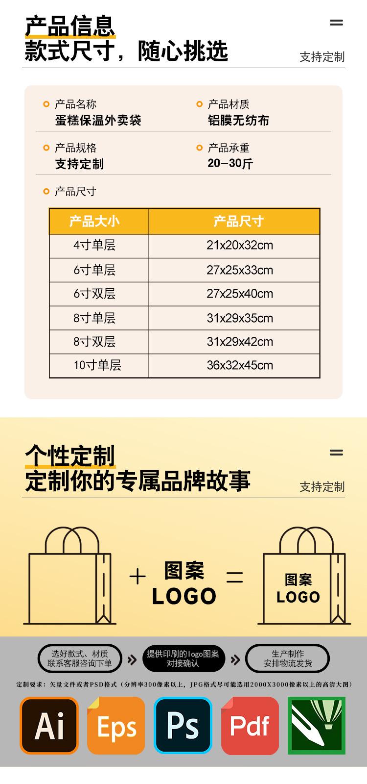 Bolsa aislante para tartas, desechable, para llevar, fresca, gruesa, no tejida, personalizable, para mascotas.