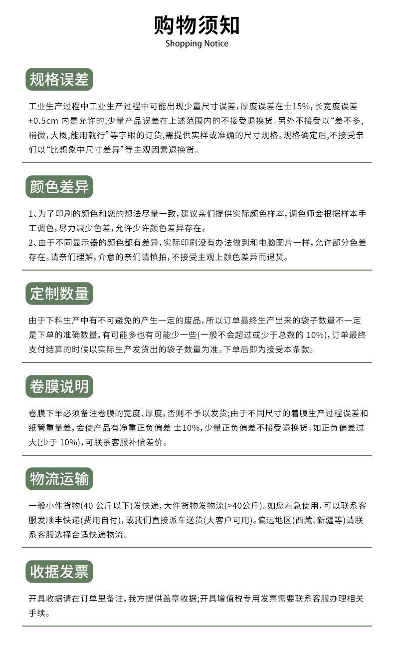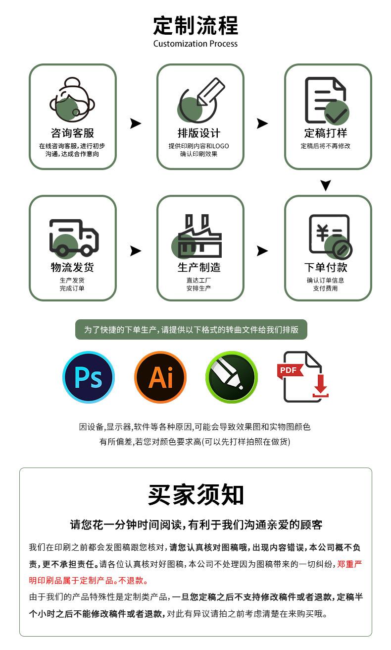 Color printing Customized as needed