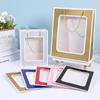 Black border window gift bag; white cardboard; length 26x width 10x height 32