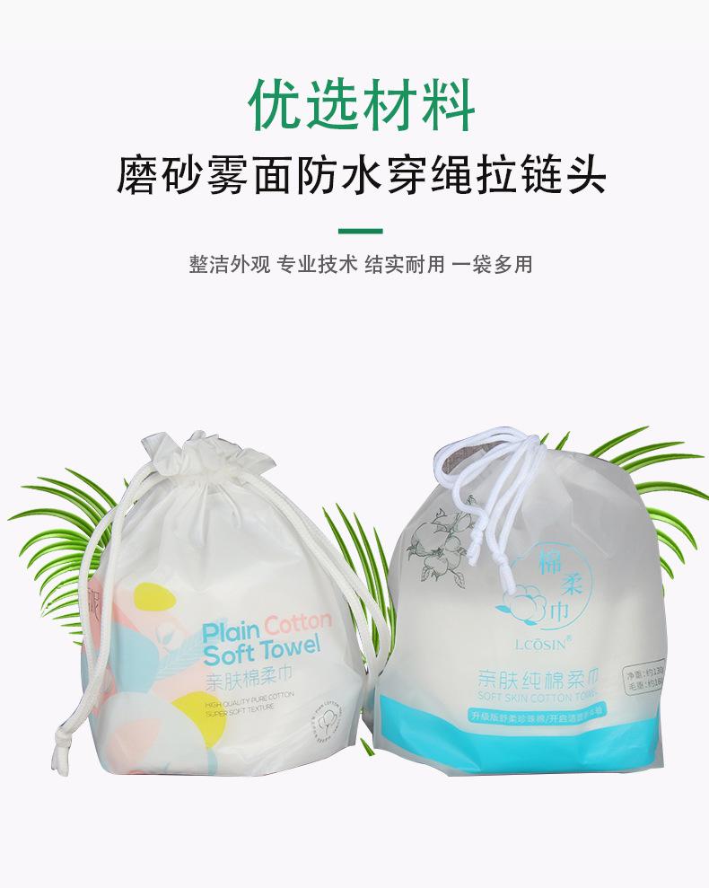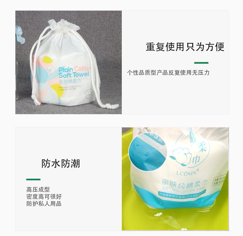 Bolsa Esmerilada con Cordón Bolsa de Almacenamiento de Plástico Bolsa de Embalaje para Toalla de Limpieza Facial Bolsa con Cordón de PE Blanca Reciclable