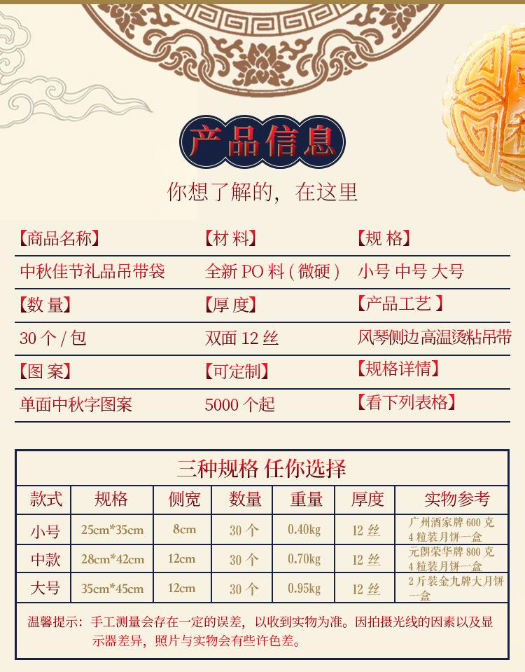 Mid-autumn festival plastic sling bag; width 25+8* length 35cm [30 pieces]