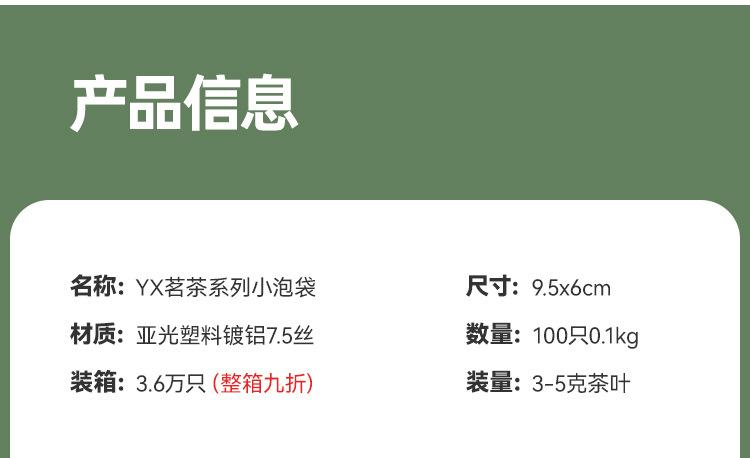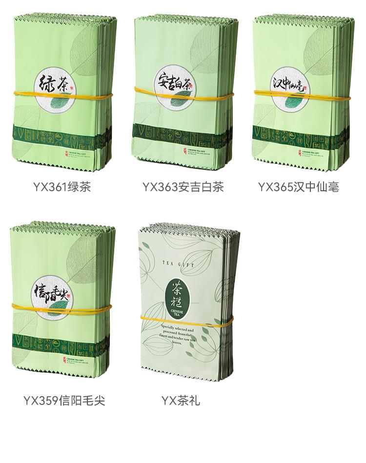 Yx362 tea red (3g); 100 pieces; various, Yx361 green tea (3g); 100 pieces; various, Yx360 longjing (3g); 100 p...