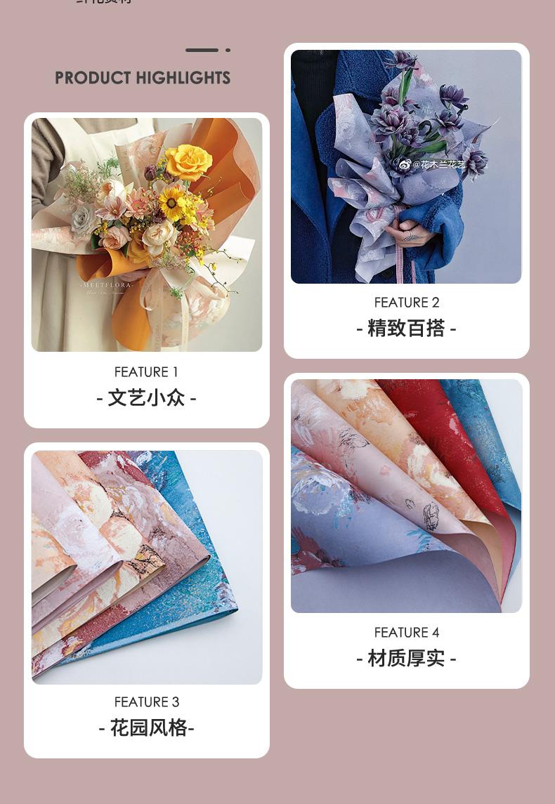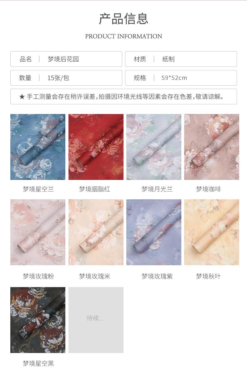 Nuevo Papel de Envoltura de Flores Jardín de Ensueño Impreso Pintura al Óleo Material Papel de Envoltura de Ramo Florería Materiales Florales
