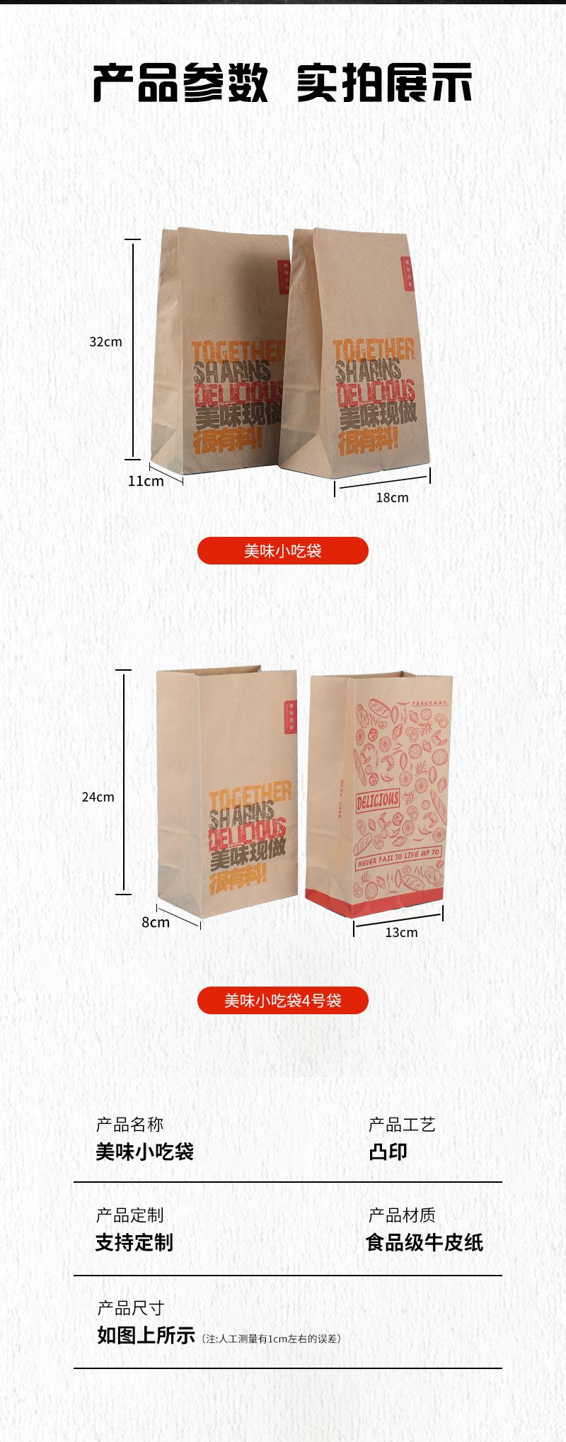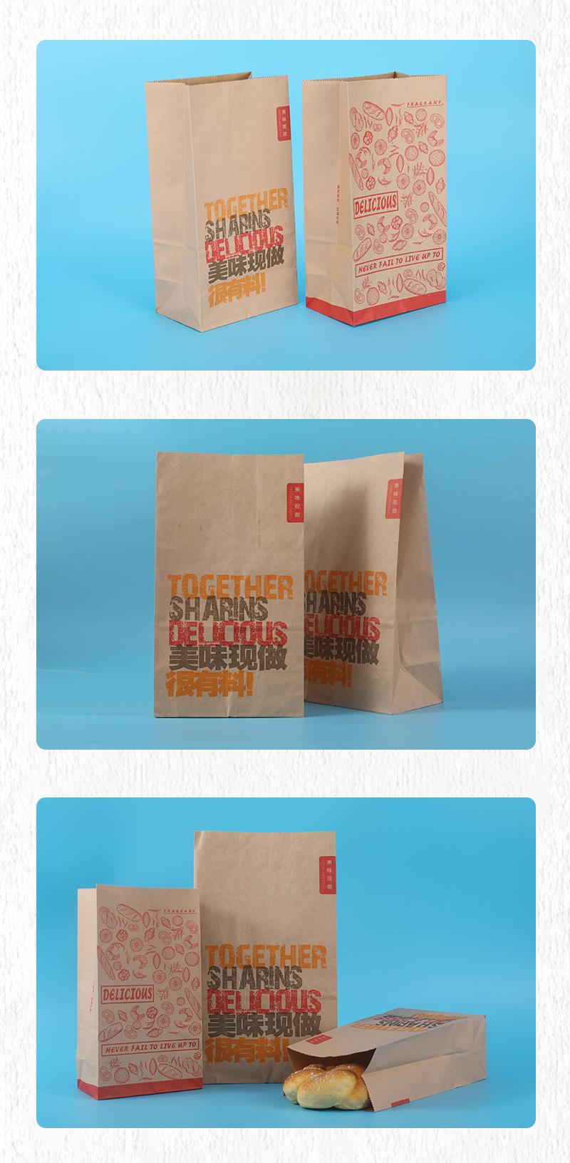 En stock Bolsa de Papel Kraft Fondo Cuadrado Bolsa para Empaque para Llevar Hamburguesa Pollo Frito Desechable Película a Prueba de Aceite Bolsa para Empaque de Snacks