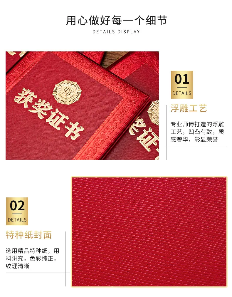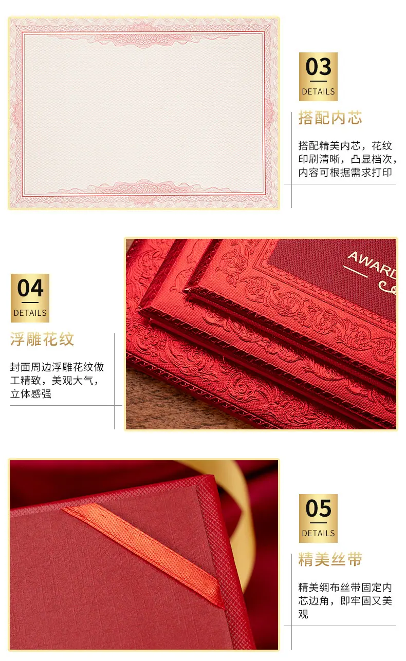 Embossed certificate of honor, certificate, award plaque, inner page, inner core
