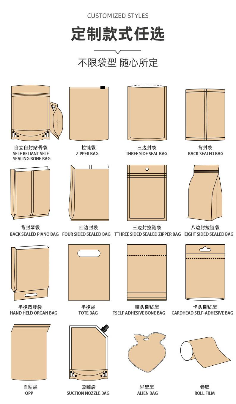Bolsa para Empaque de Alimentos sin Imprimir, Bolsa Stand-Up Personalizada, Bolsa de Papel Kraft con Ventana y Cierre Ziplock Sellado de Ocho Lados, Bolsa para Sellado de Alimentos