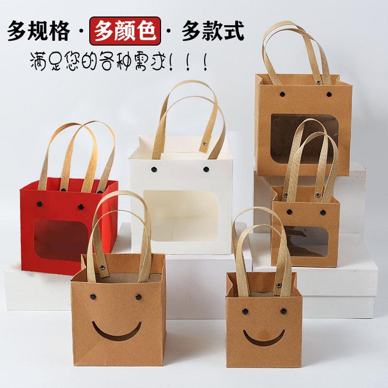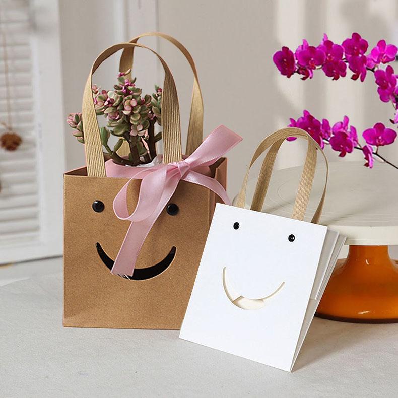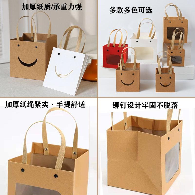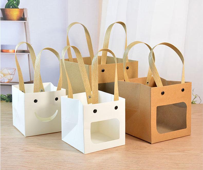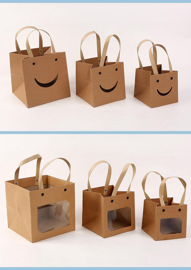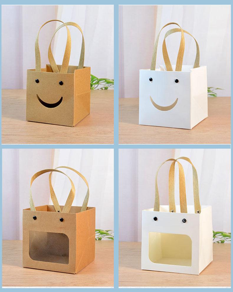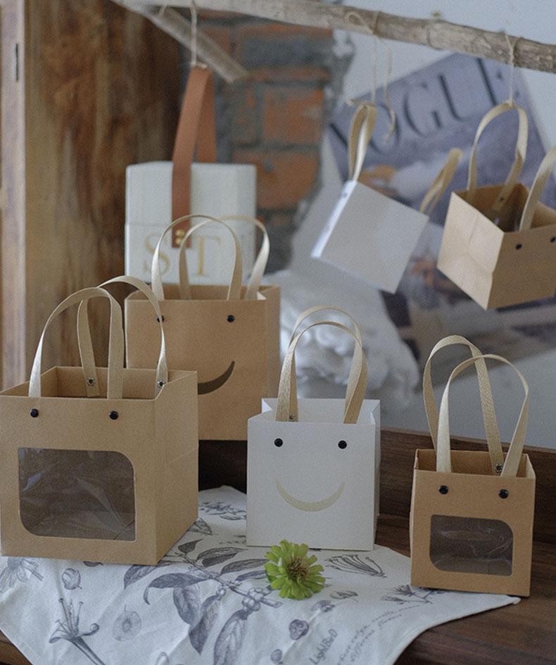 Bolsa de Papel Kraft con Ventana Cuadrada de Cara Sonriente a la Moda, Bolsa Tote Cuadrada de Souvenir para Regalo de Flores