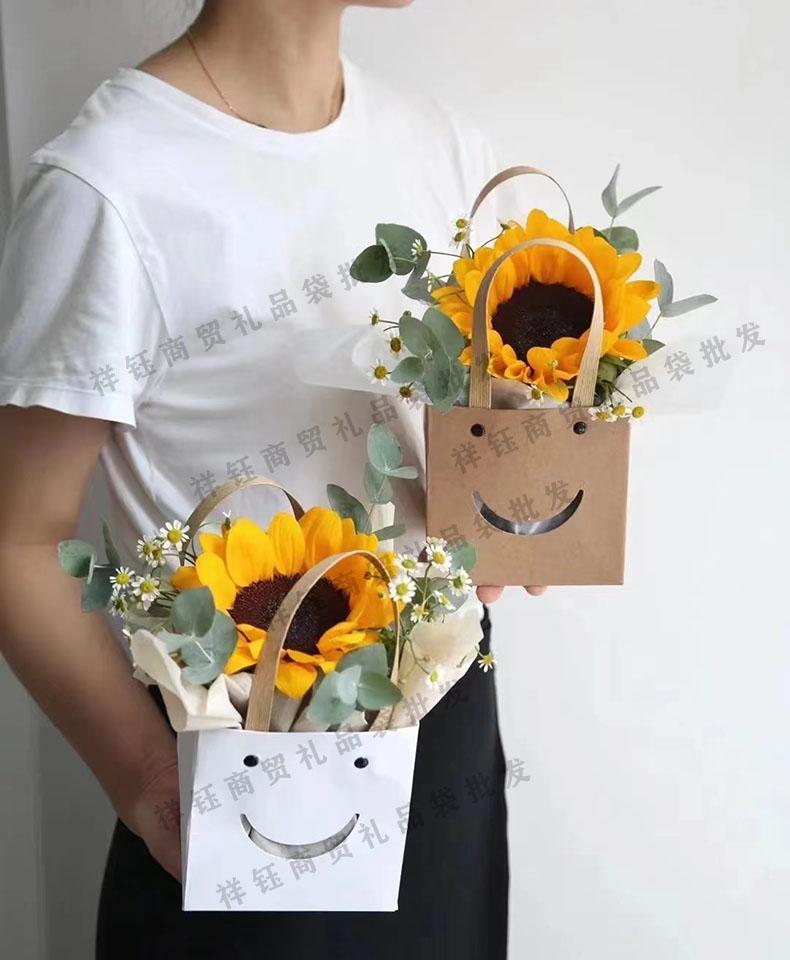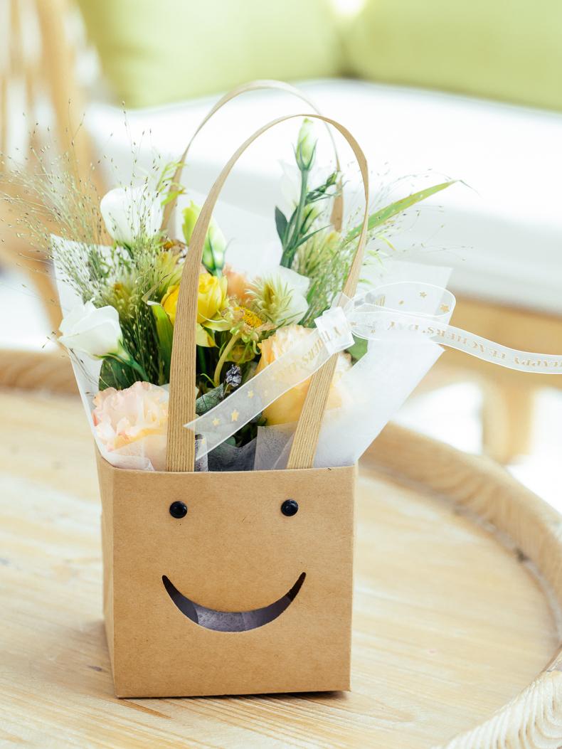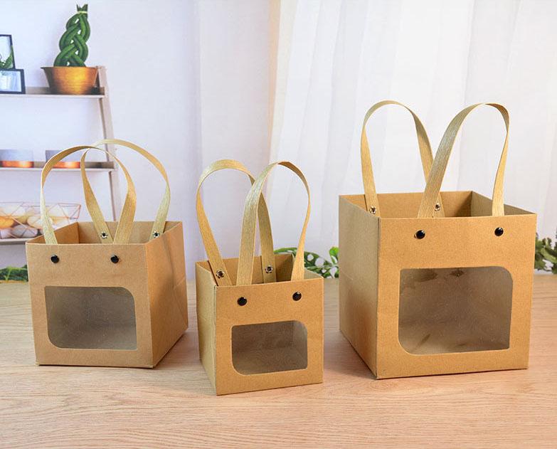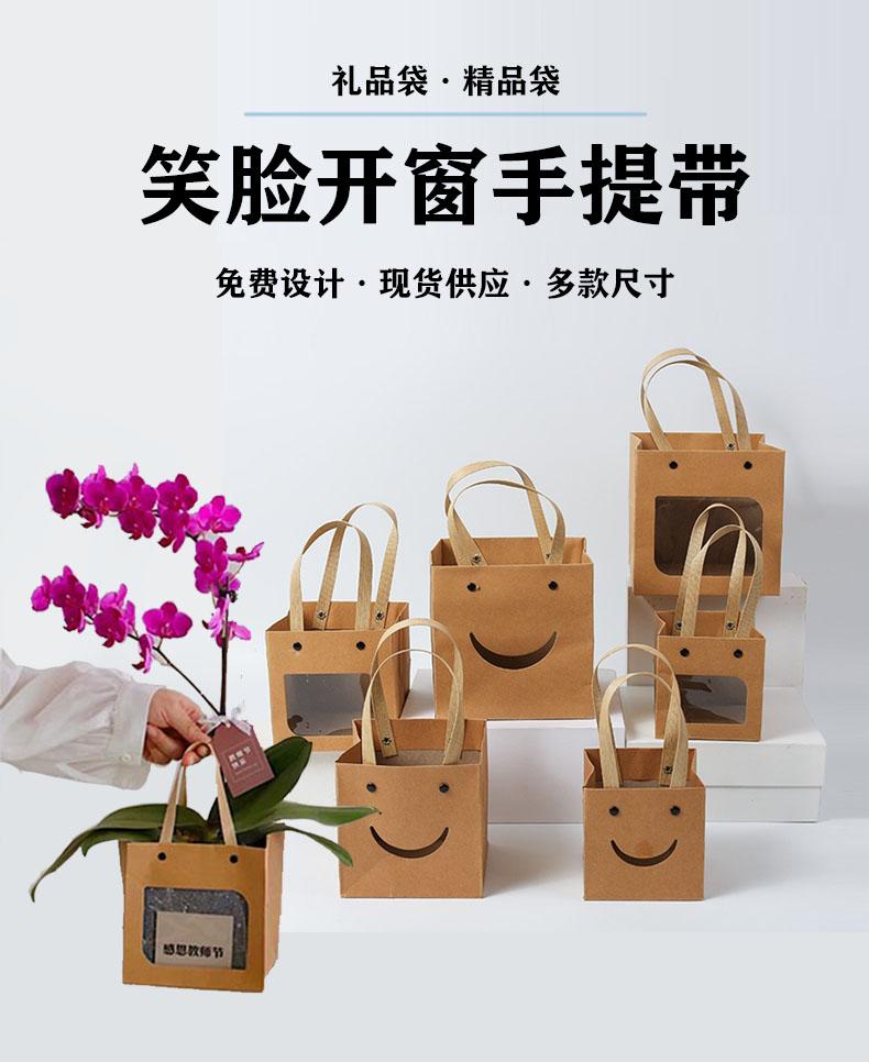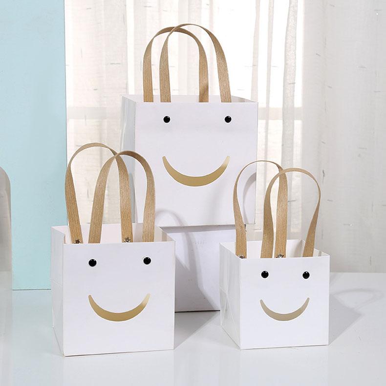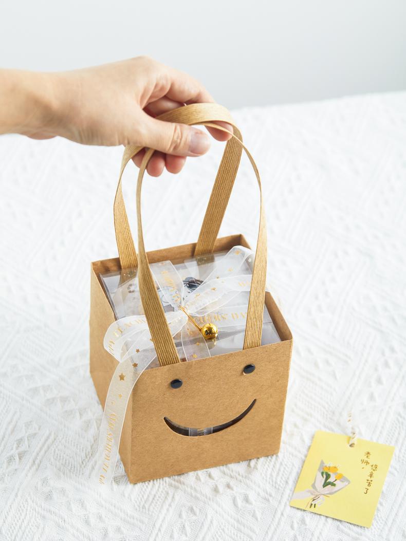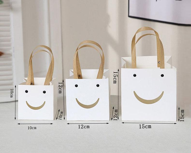 Bolsa de Papel Kraft con Ventana Cuadrada de Cara Sonriente a la Moda, Bolsa Tote Cuadrada de Souvenir para Regalo de Flores