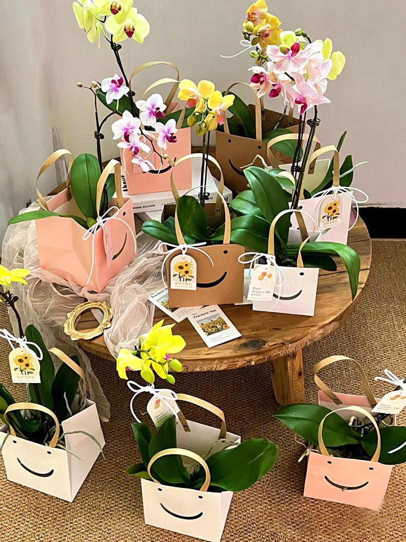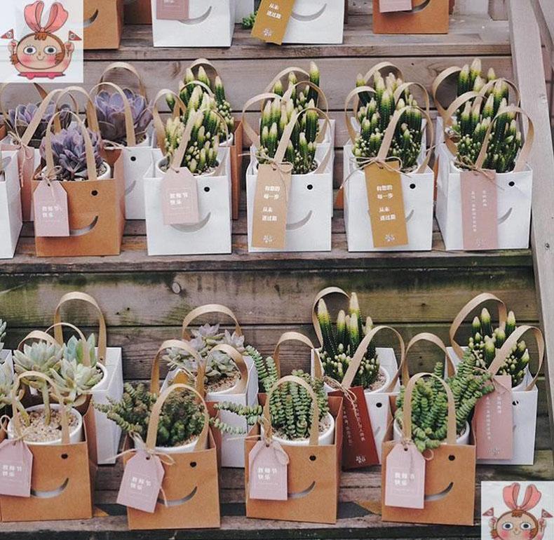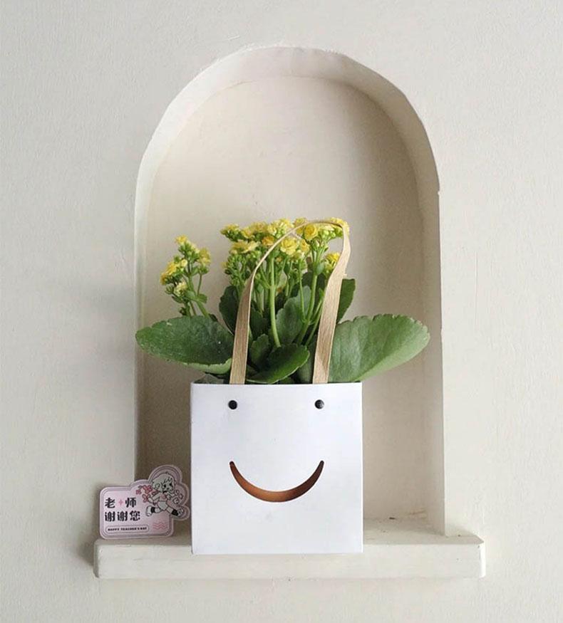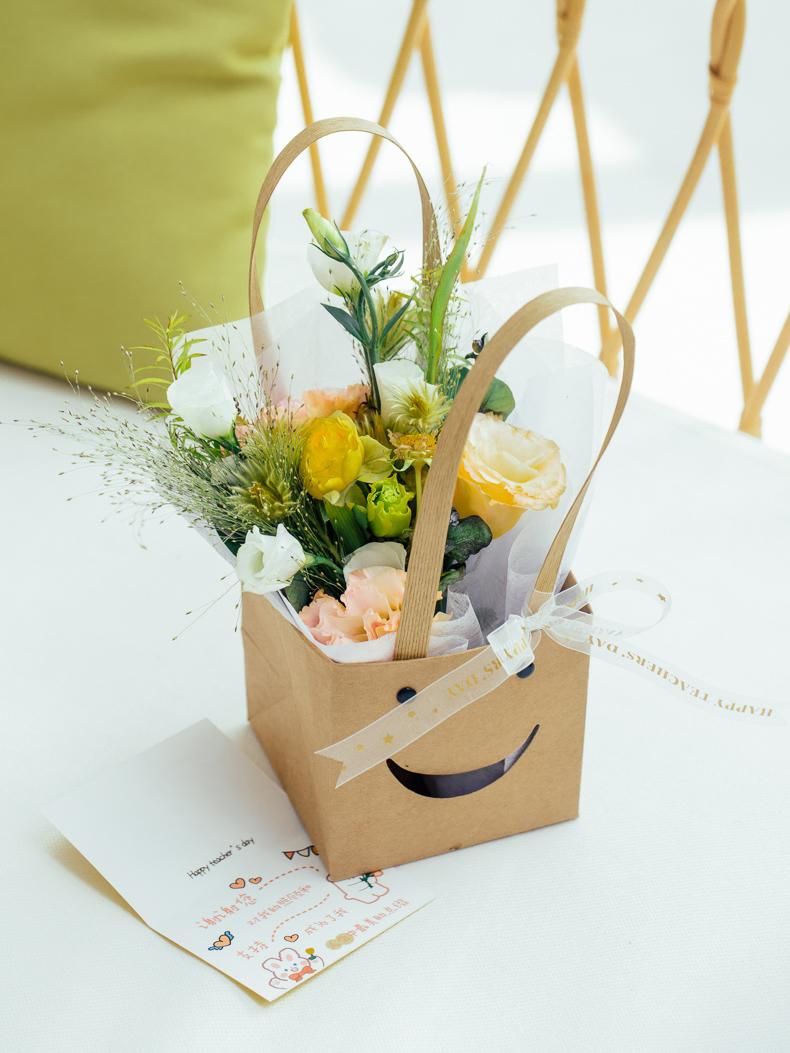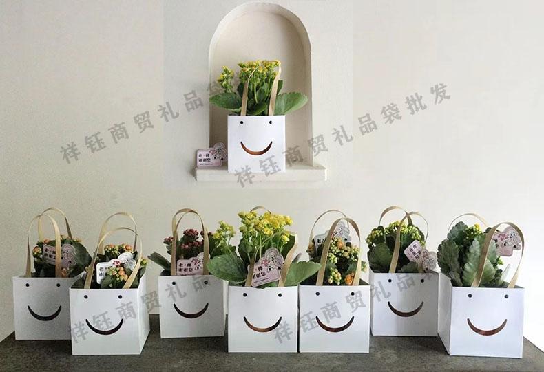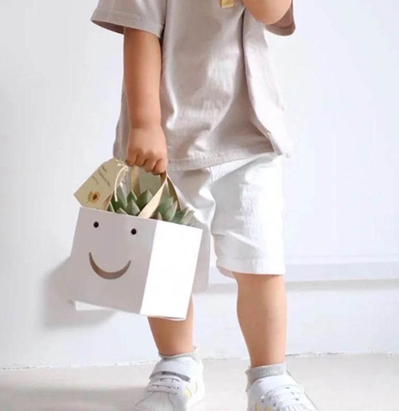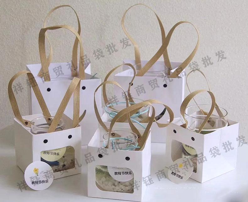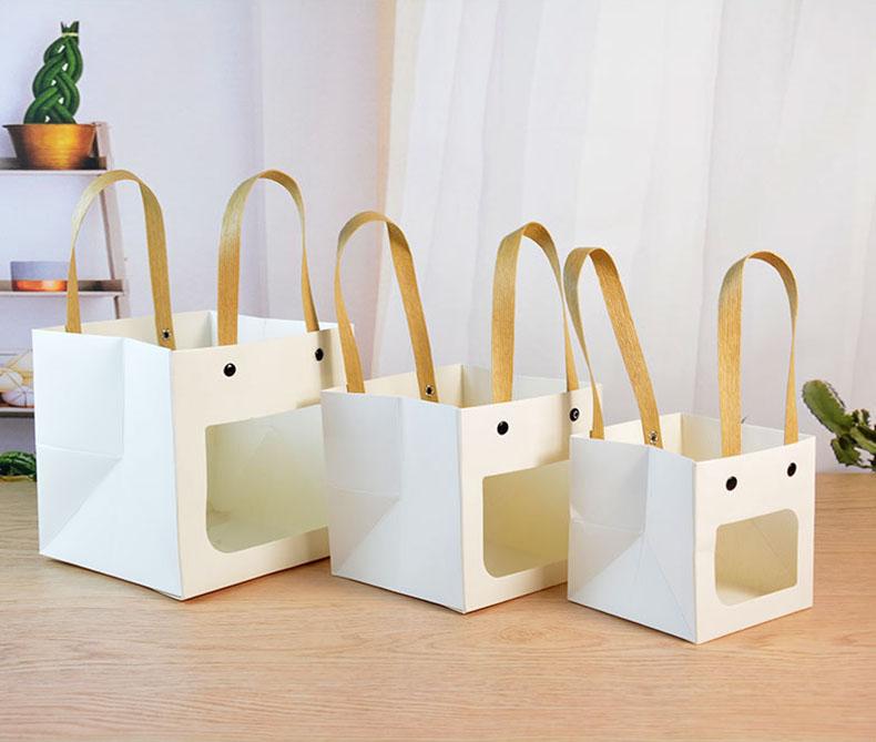Bolsa de Papel Kraft con Ventana Cuadrada de Cara Sonriente a la Moda, Bolsa Tote Cuadrada de Souvenir para Regalo de Flores