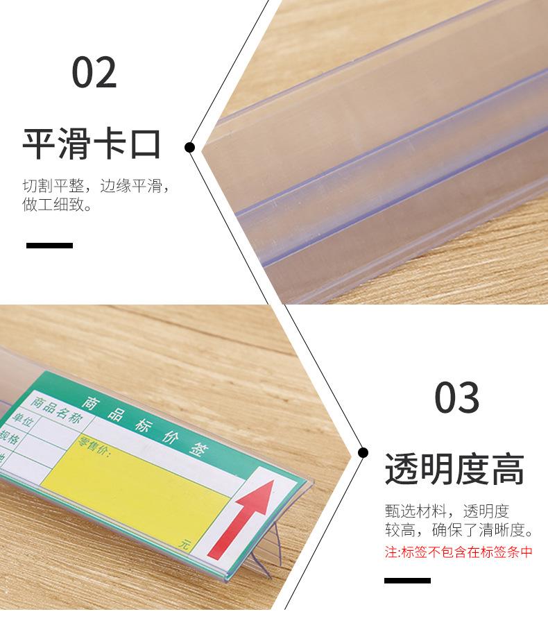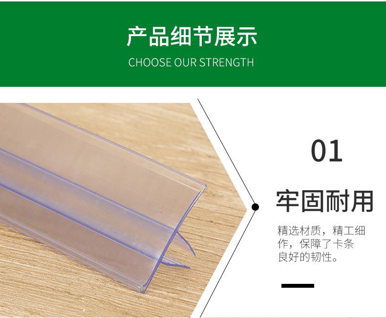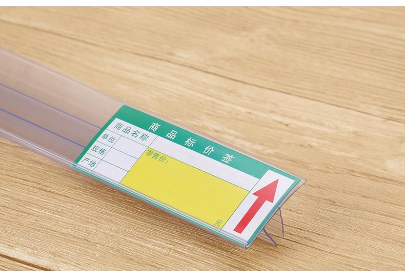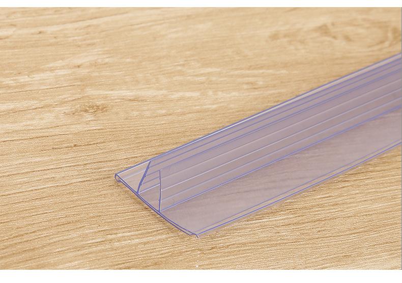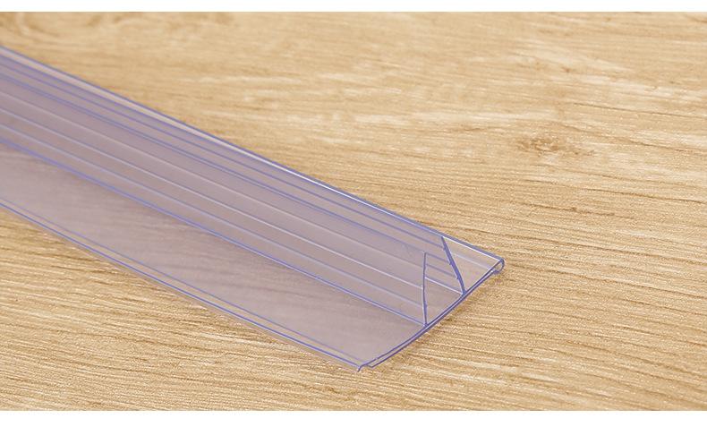 Portatarjetas de vidrio tipo tarjeta media tira de precio, para 8 a 12 estantes de vidrio, ancho 42, longitud personalizable, hecho de extrusión de PVC transparente, tarjetas en el estante de vidrio, sobresale más de 1 cm