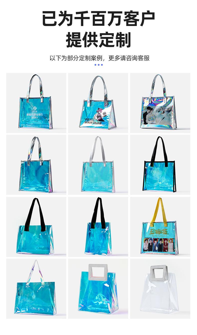 Bolsa Láser Logo Personalizado Bolsa de Gelatina Colorida Bolso de Mano Transparente de PVC Bolsa de Plástico para Regalo Bolsa de Embalaje Personalizada