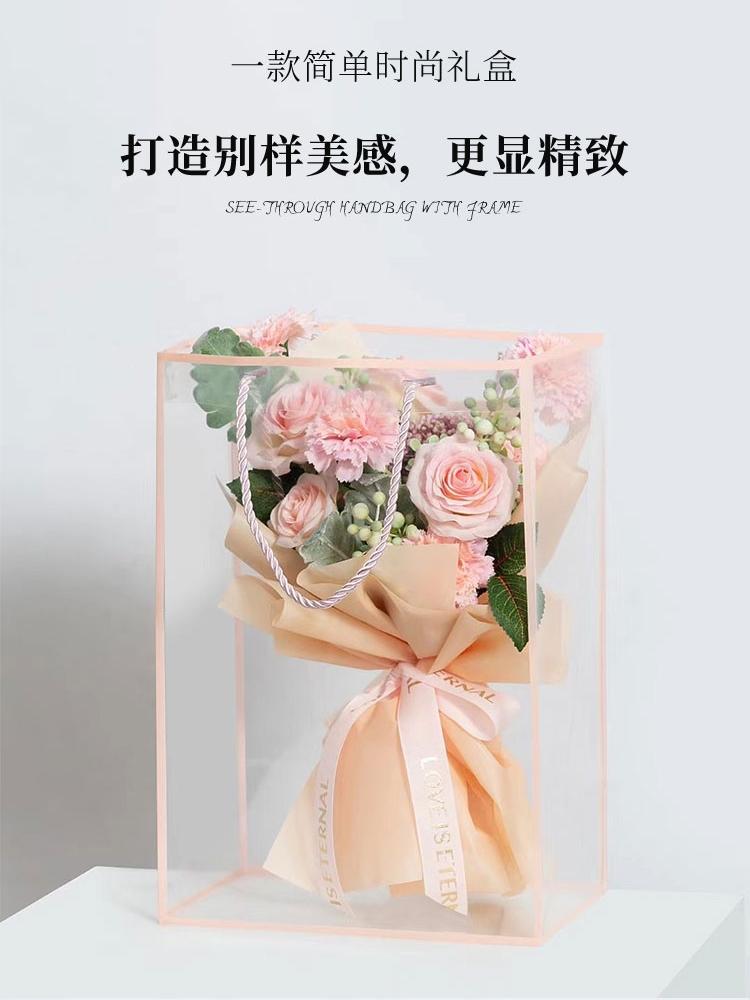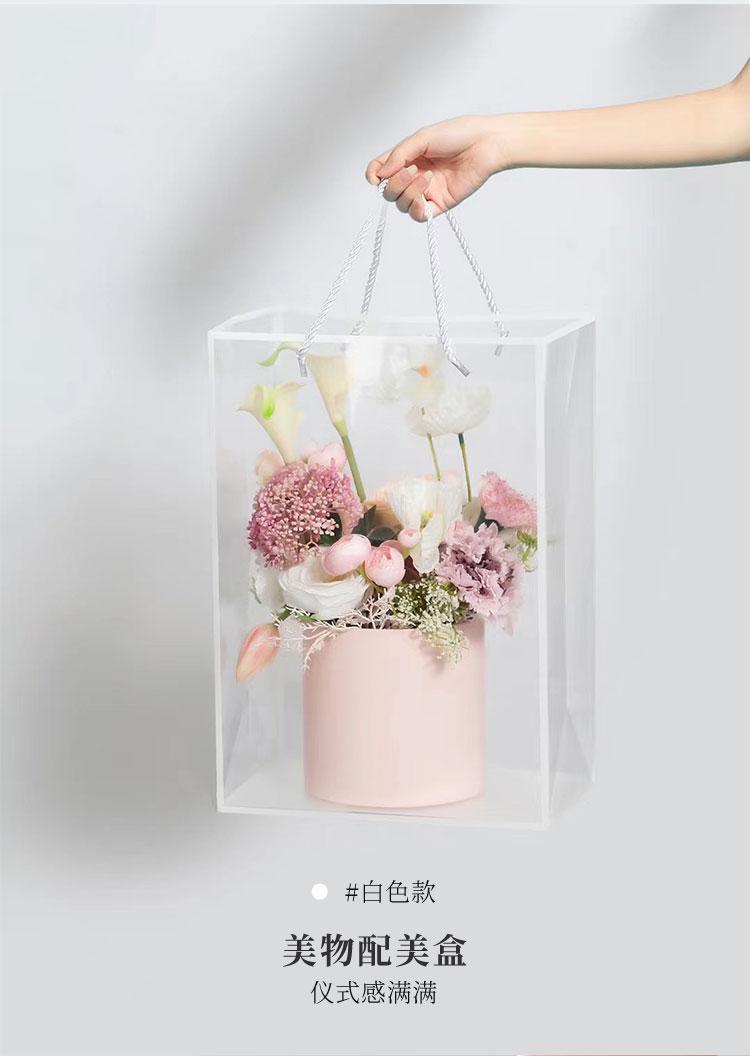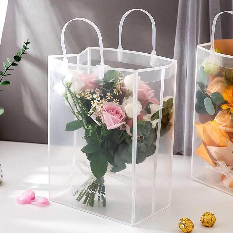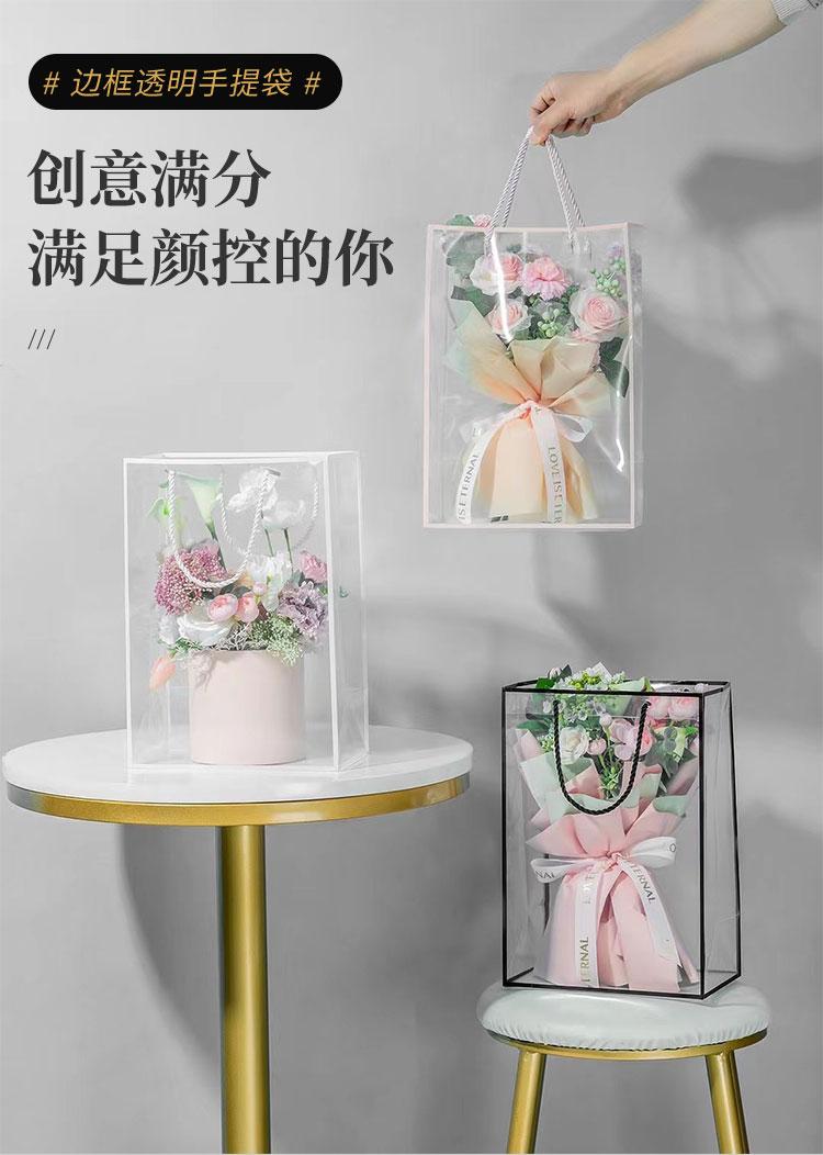 Bolso de Mano con Borde de Ventana de PVC Transparente Embalaje de Ramo Arreglo Floral Bolsa Tienda de Flores Caja de Regalo Floral para Vacaciones