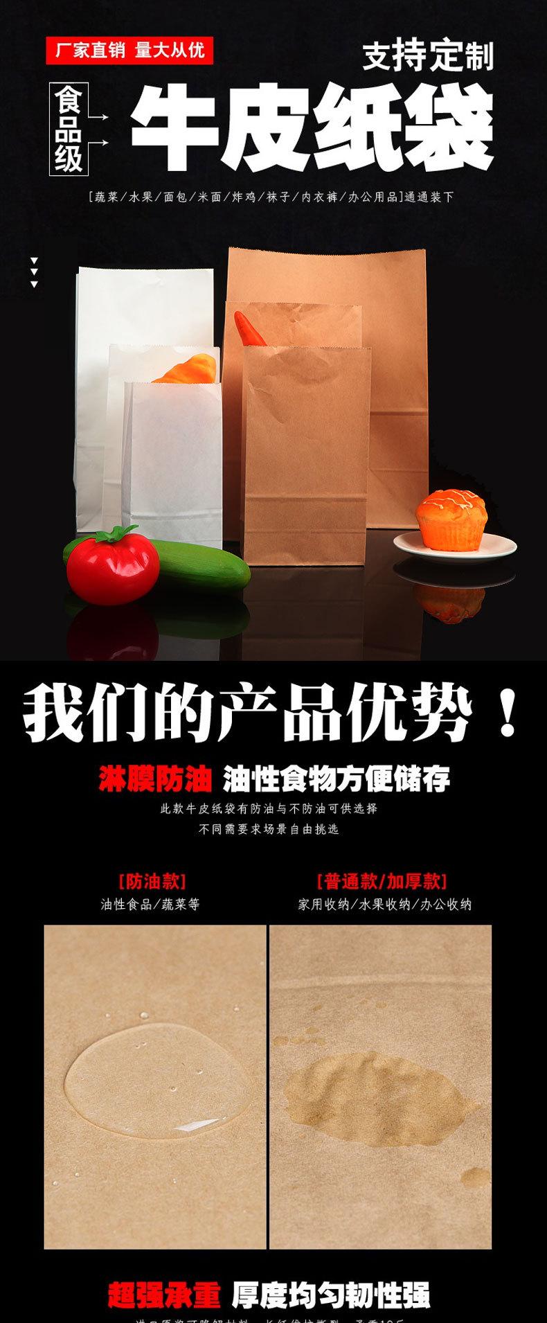 Bolsa de Papel Kraft Bolsa para Alimentos Fondo Cuadrado Para Llevar Barbacoa Bolsa de Embalaje Papel a Prueba de Grasa Bolsa de Pan Grado Alimenticio Embalaje Personalizado