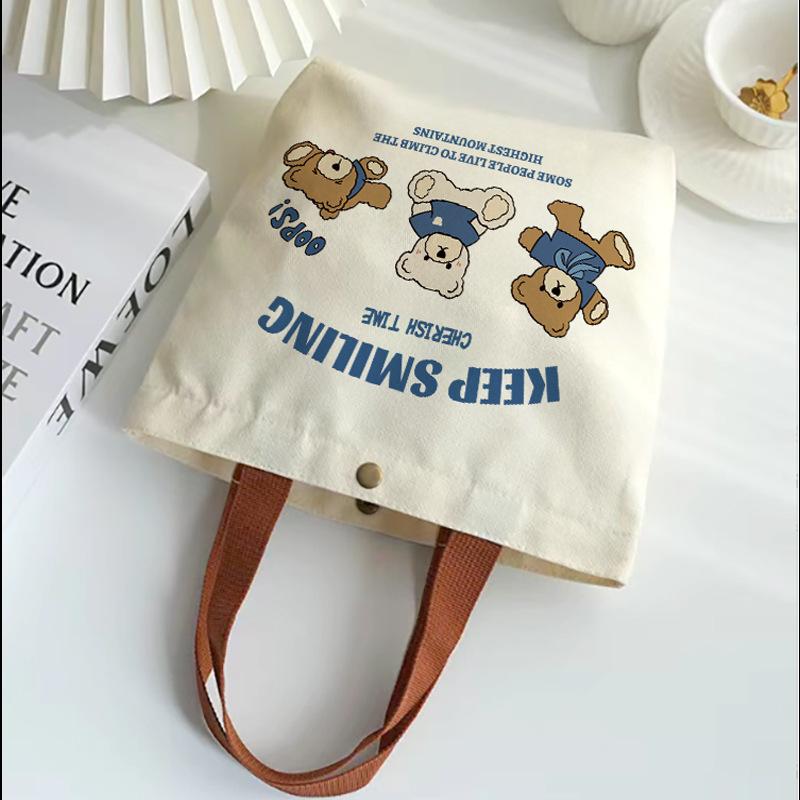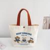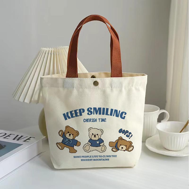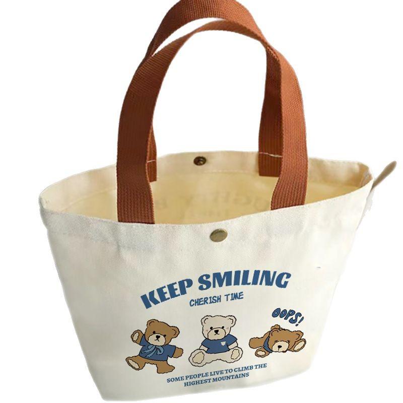 Bolsa de Lona de Oso Bolso de Mano Pequeño Estudiante Femenina Bolsa para Lonchera Bolso de Mano Simple Bolsa de Lona Bolsa para Almuerzo Trabajador de Oficina