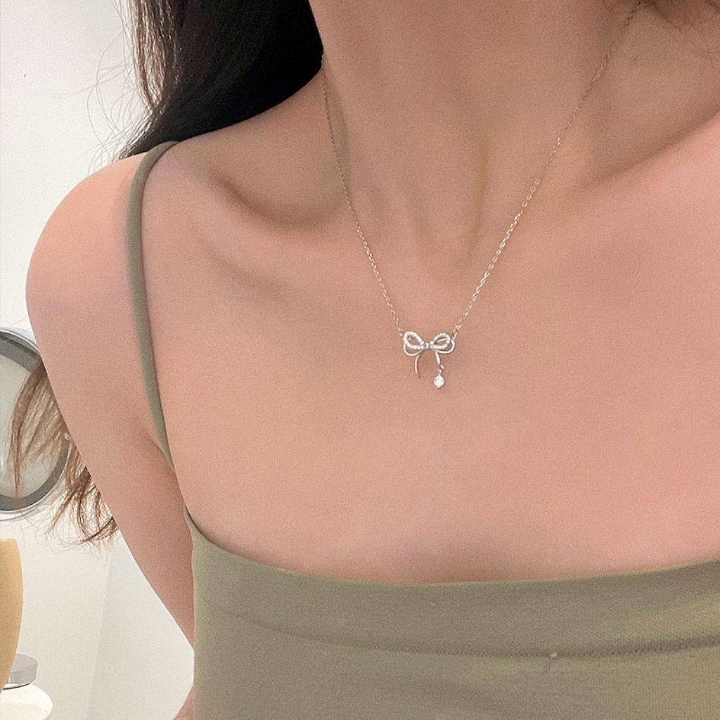 Xl17 diamond bow necklace, X3 double layer butterfly silver necklace, X2 double heart silver necklace, Xl1 [lu...