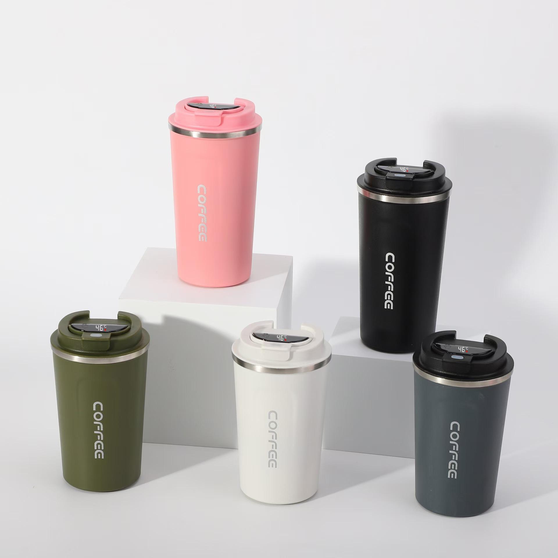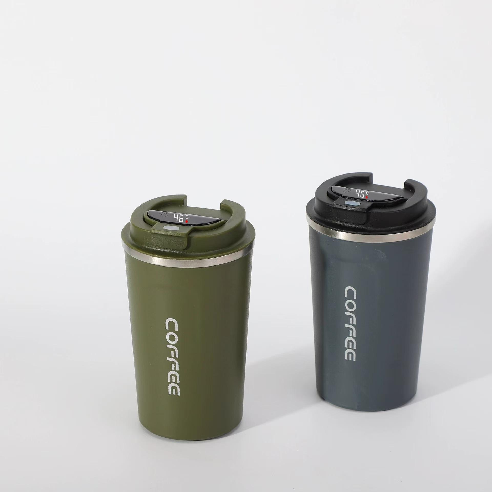 Taza de café con pantalla inteligente de temperatura de moda transfronteriza, taza de aislamiento al vacío de acero inoxidable 304, taza de agua portátil para coche