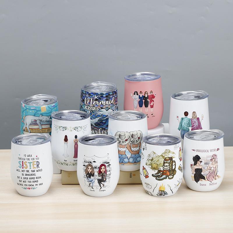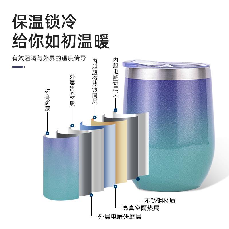 Taza de Cáscara de Huevo de Comercio Exterior Transfronterizo 12oz Vaso de Vino de Acero Inoxidable 304 Copa de Huevo al Vacío de Doble Capa Taza de Café Aislada en Forma de U