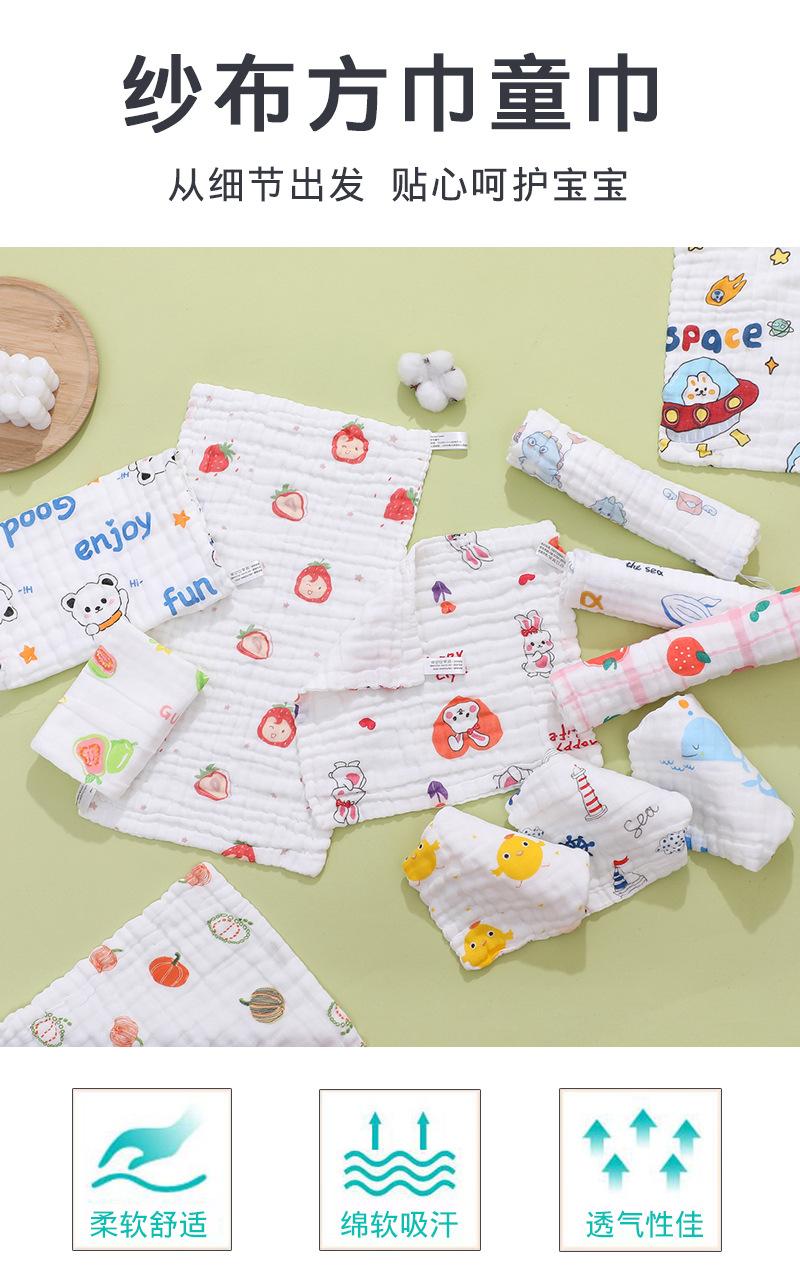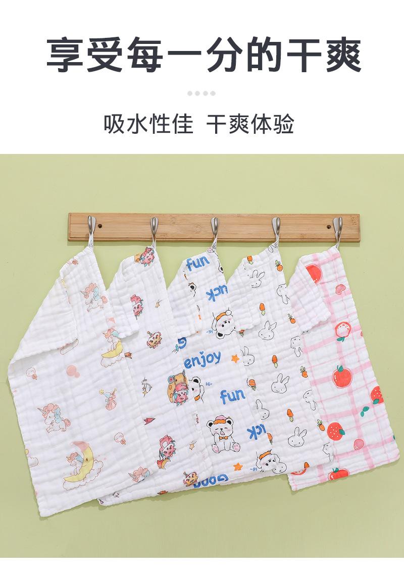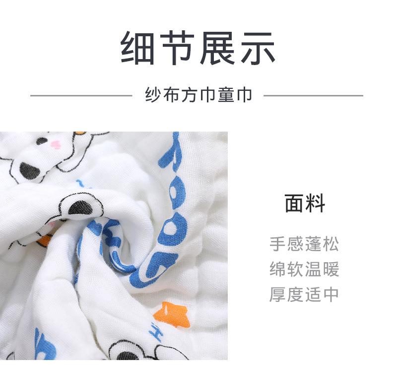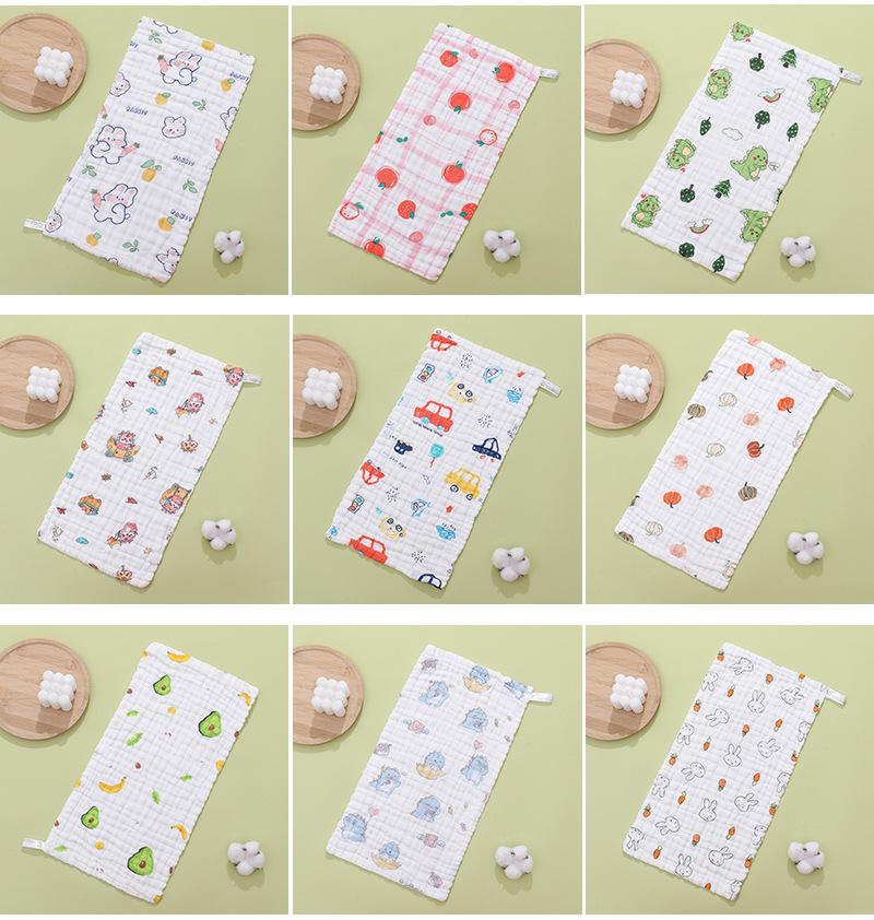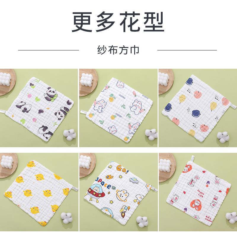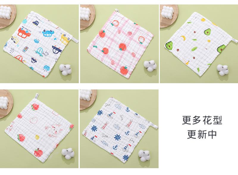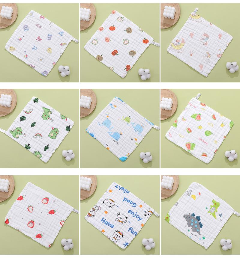 Cuadrado de gasa de seis capas de algodón de alta densidad toalla pequeña para bebé toalla de lavado para bebé gasa de dibujos animados toalla para saliva pañuelo pequeño estampado