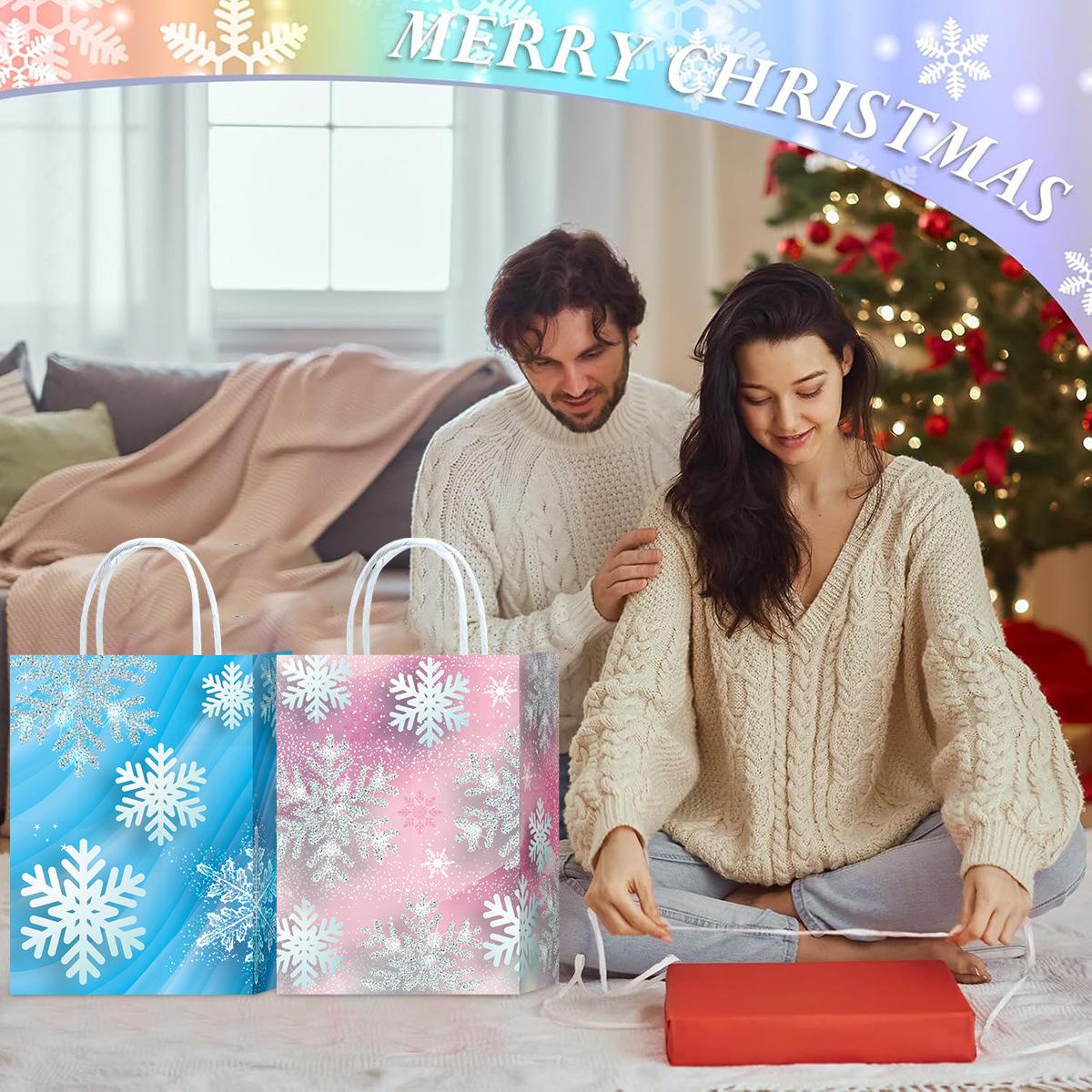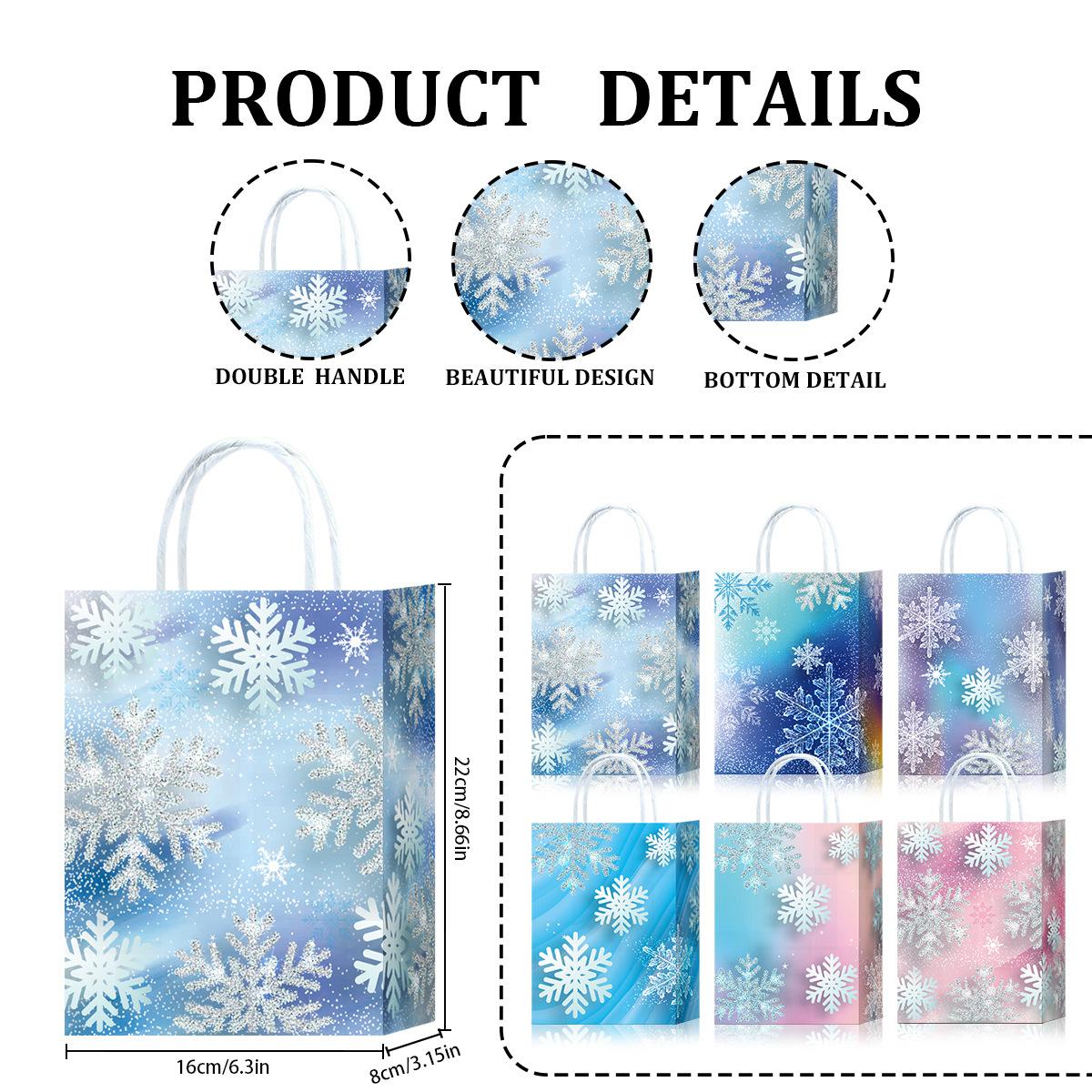 Bolso de Mano de Papel Transfronterizo Bolso de Mano Soñador Brillante Copo de Nieve Bolso de Compras Fiesta Embalaje de Regalo Bolsa de Papel Kraft