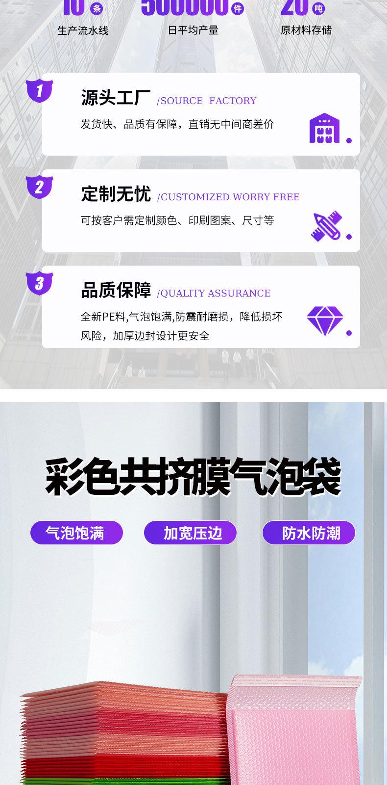 Material de Embalaje de Ropa de Película Coextruida Colorida Bolsa de Mensajería de Espuma Bolsa de Burbujas Bolsa Autoadhesiva Sobre Impermeable Bolsa de Aire