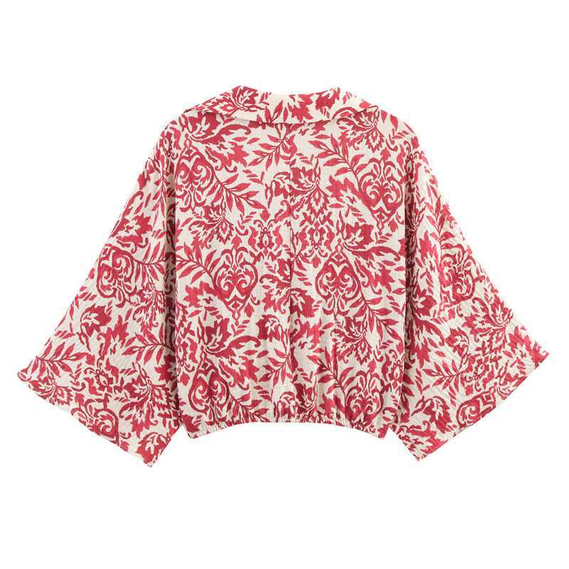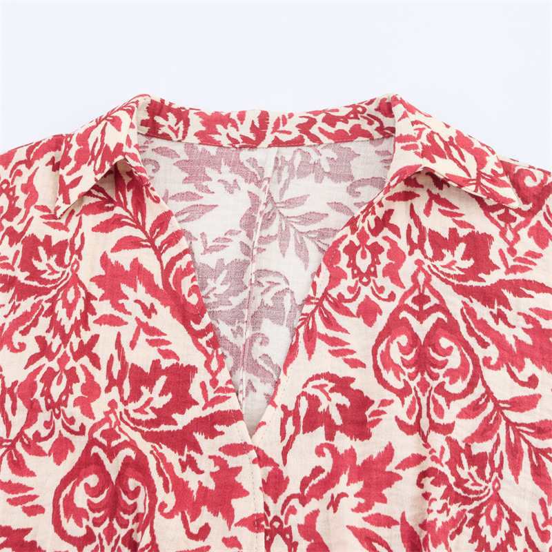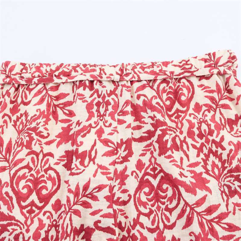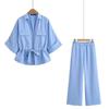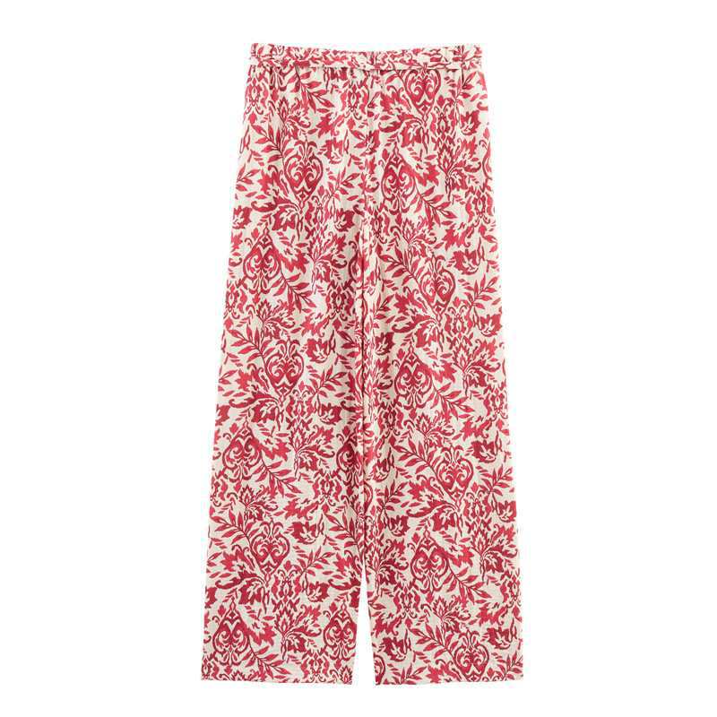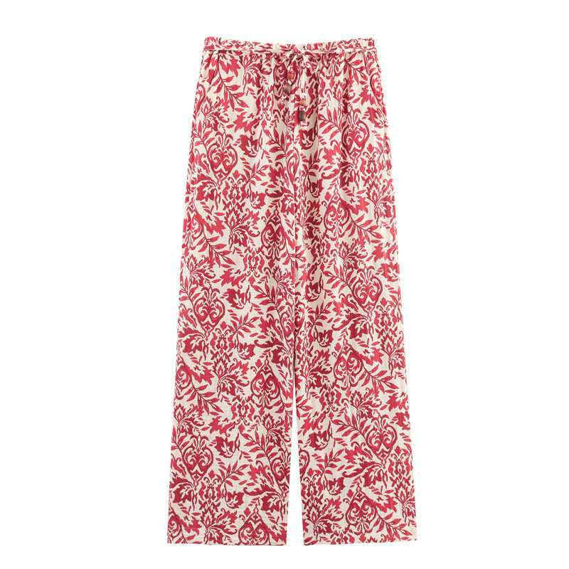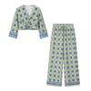 Moda Casual de Manga Larga Estampado Comercio Exterior Nuevo Estilo Europeo y Americano Pantalones de Pierna Ancha Tops de Verano para Mujer