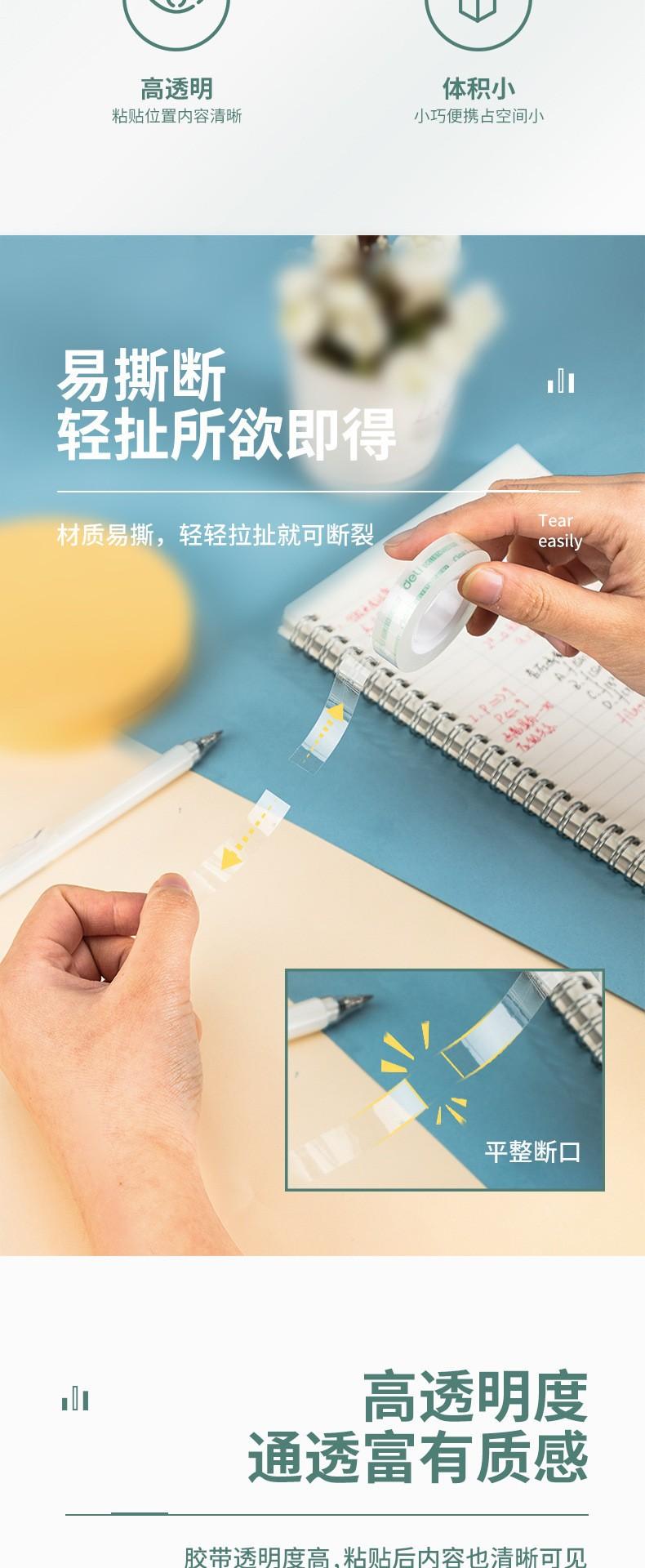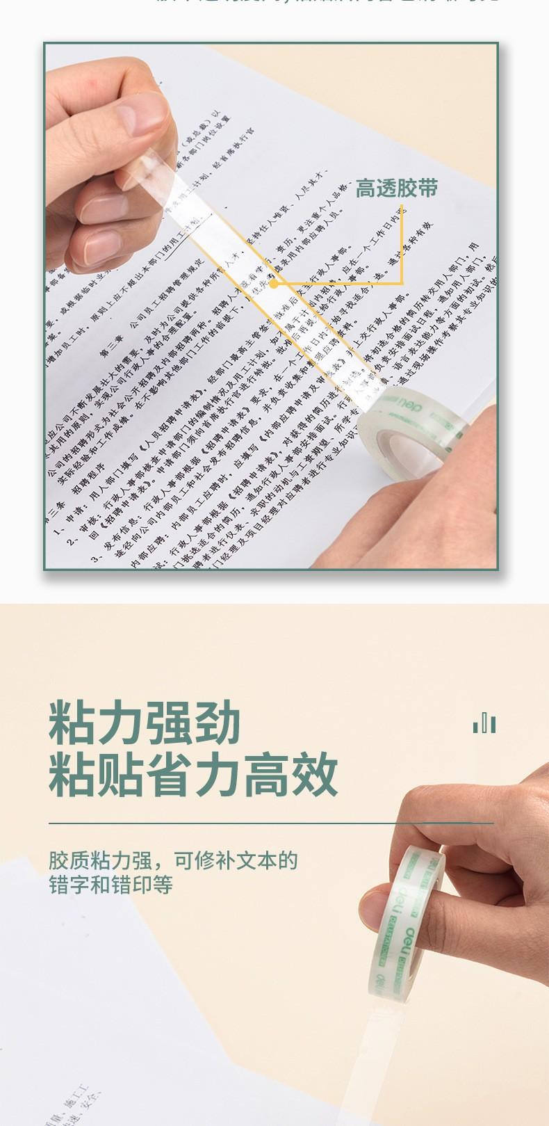 Deli 3009 Cinta Transparente 12Mm*30Y Papelería para Estudiantes Corrección Corrección Cinta Estrecha Papel Rollo Individual