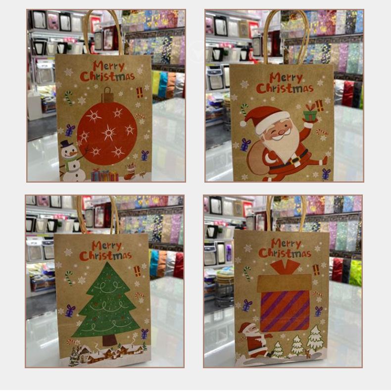 Embalaje de regalo de Navidad bolsa de mano creativa de dibujos animados de papel Kraft para regalo de vacaciones bolsa de embalaje para regalo de cumpleaños