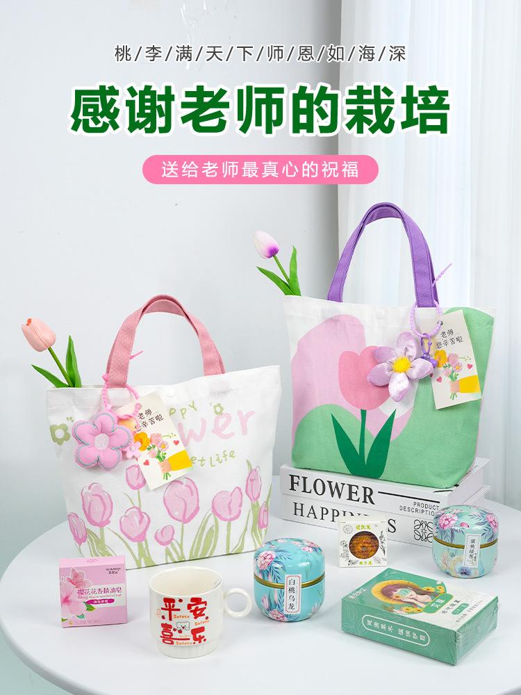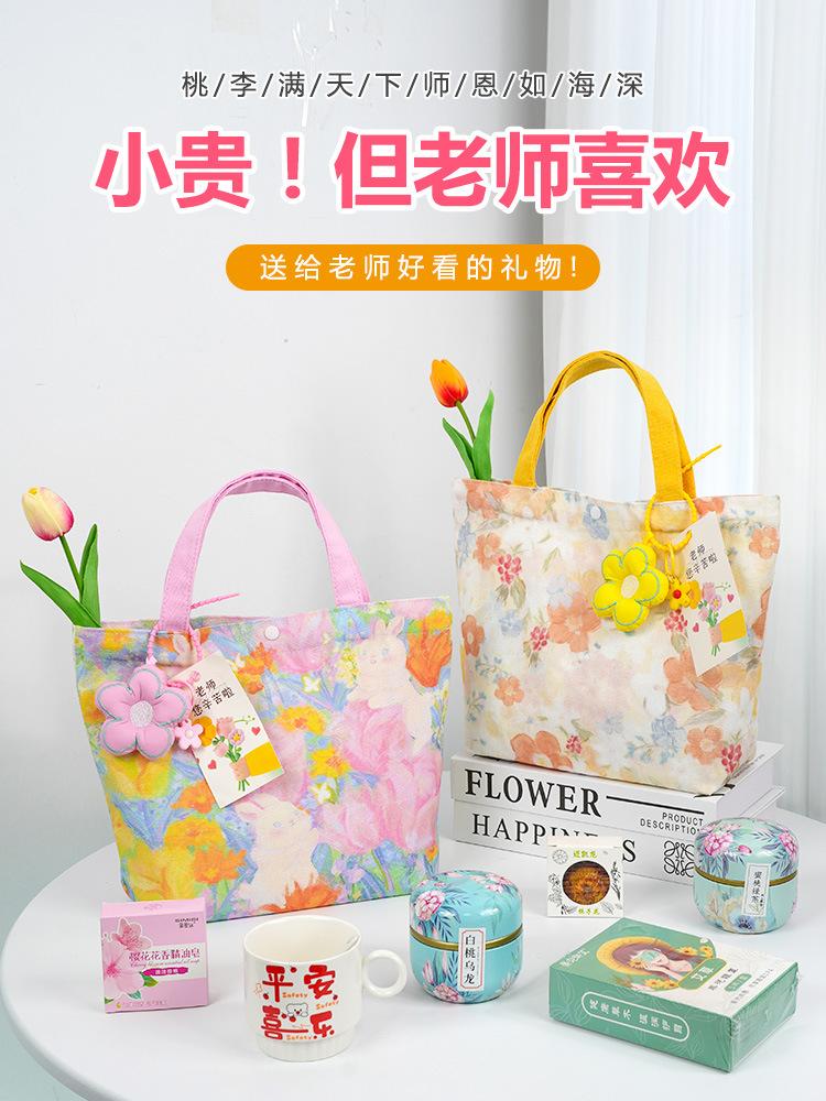 Small persimmon ruyi horizontal style handbag; canvas bag; 1 piece, Happy teacher's day [orange sunflower gift...