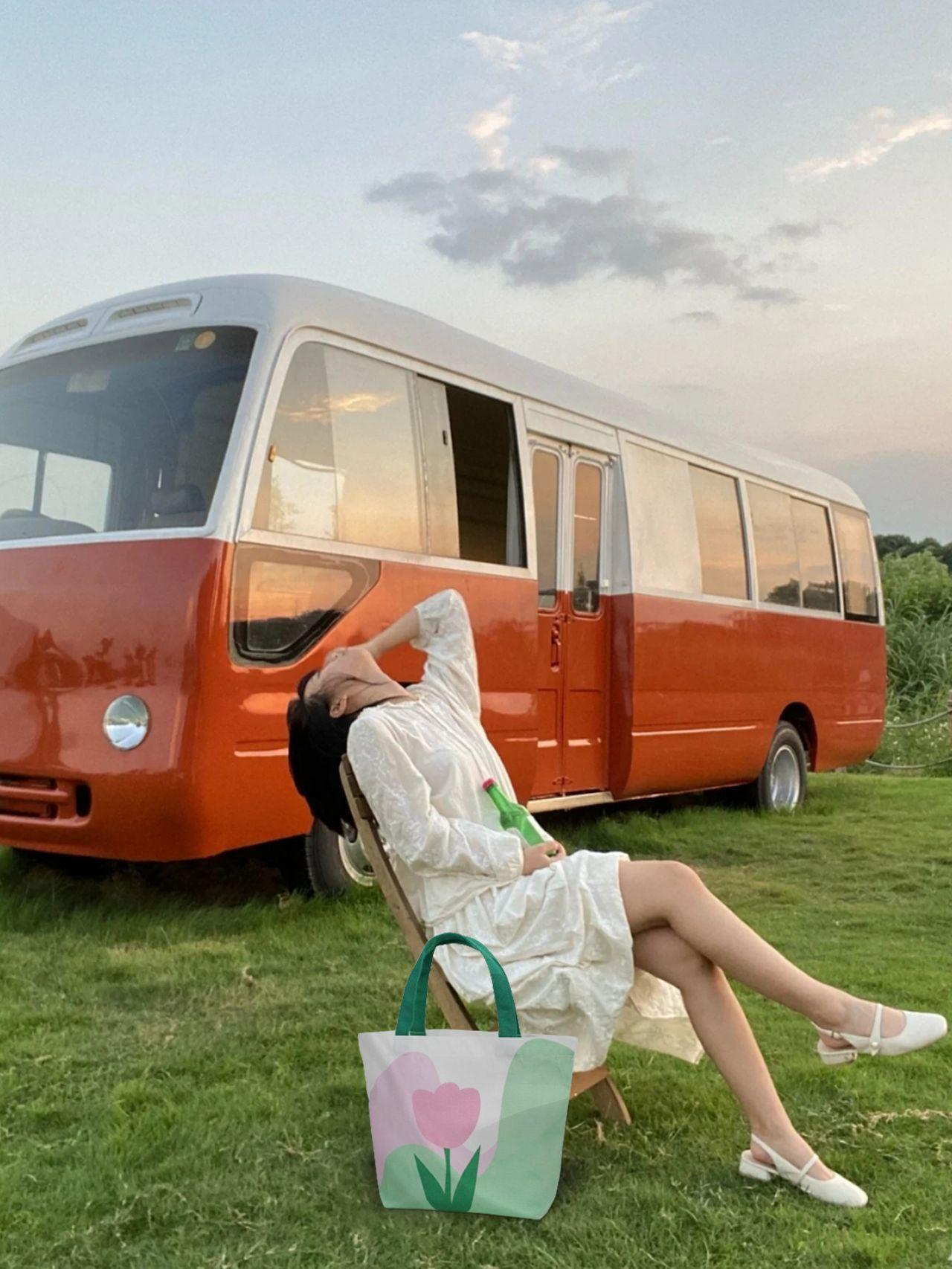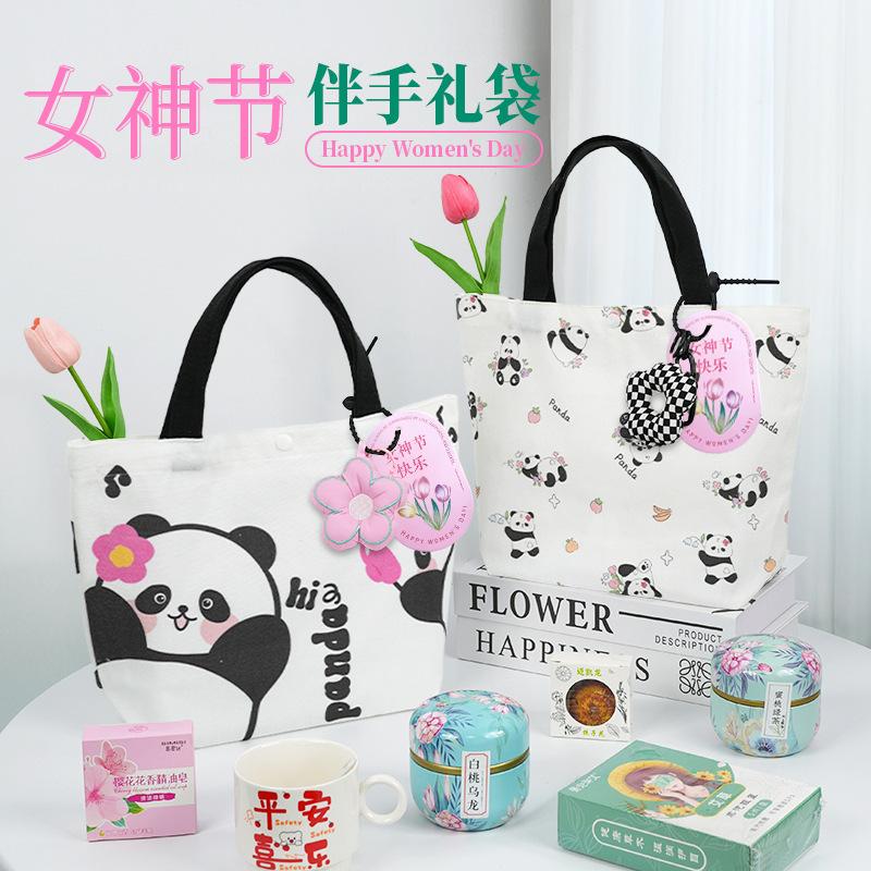 Small canvas bag with purple flowers, Small canvas bag giant panda, Small canvas bag pink tulips, Small canvas...