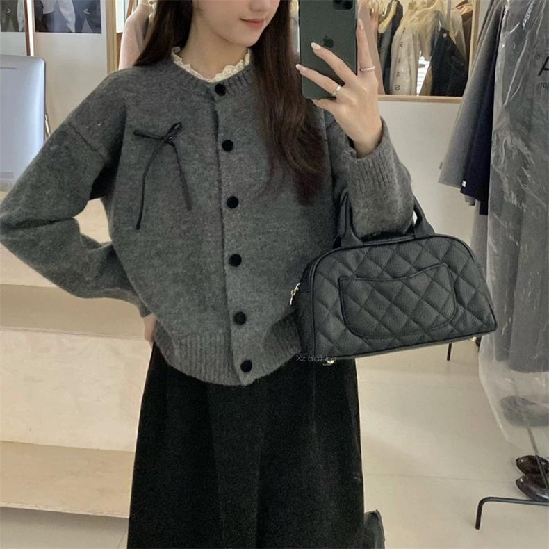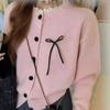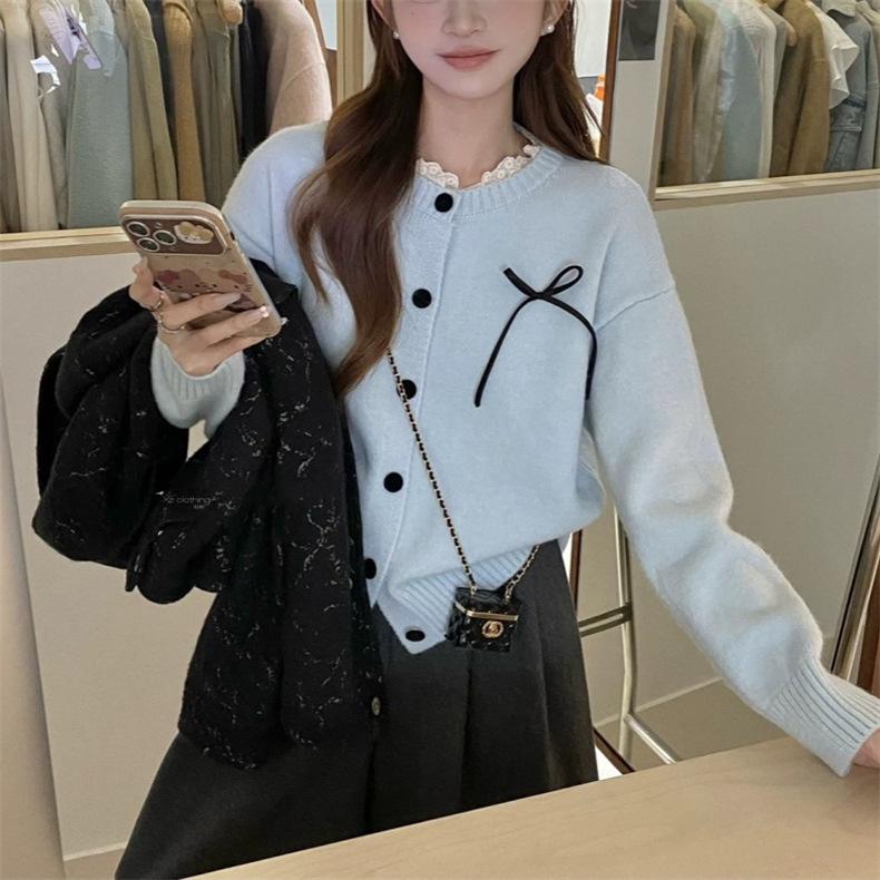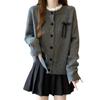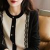Suéter de Patchwork con Encaje de Estilo Retro Francés para Otoño/Invierno para Mujer, Suave, Ceroso, a la Moda, de Cuello Redondo con Botones, Cárdigan de Punto